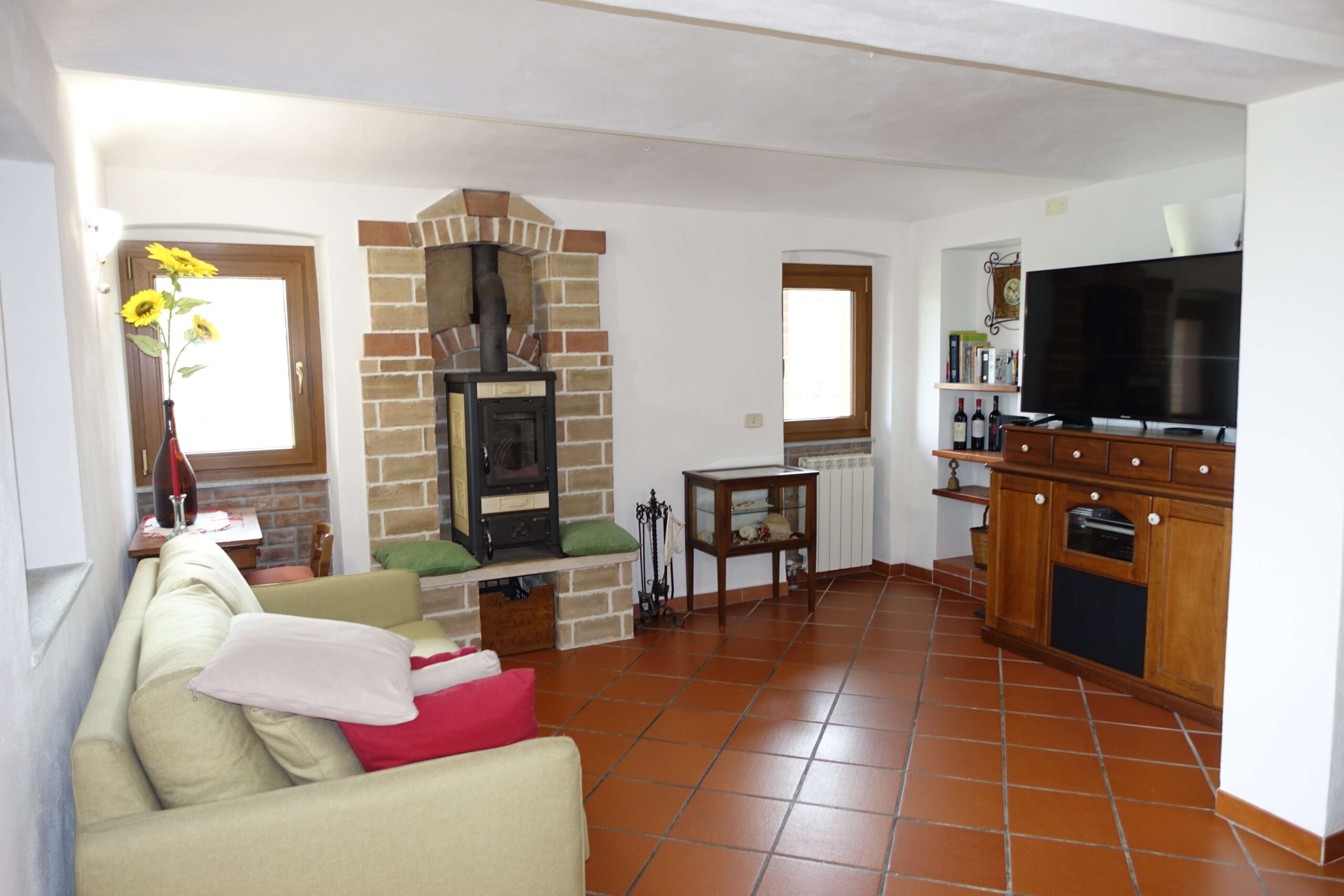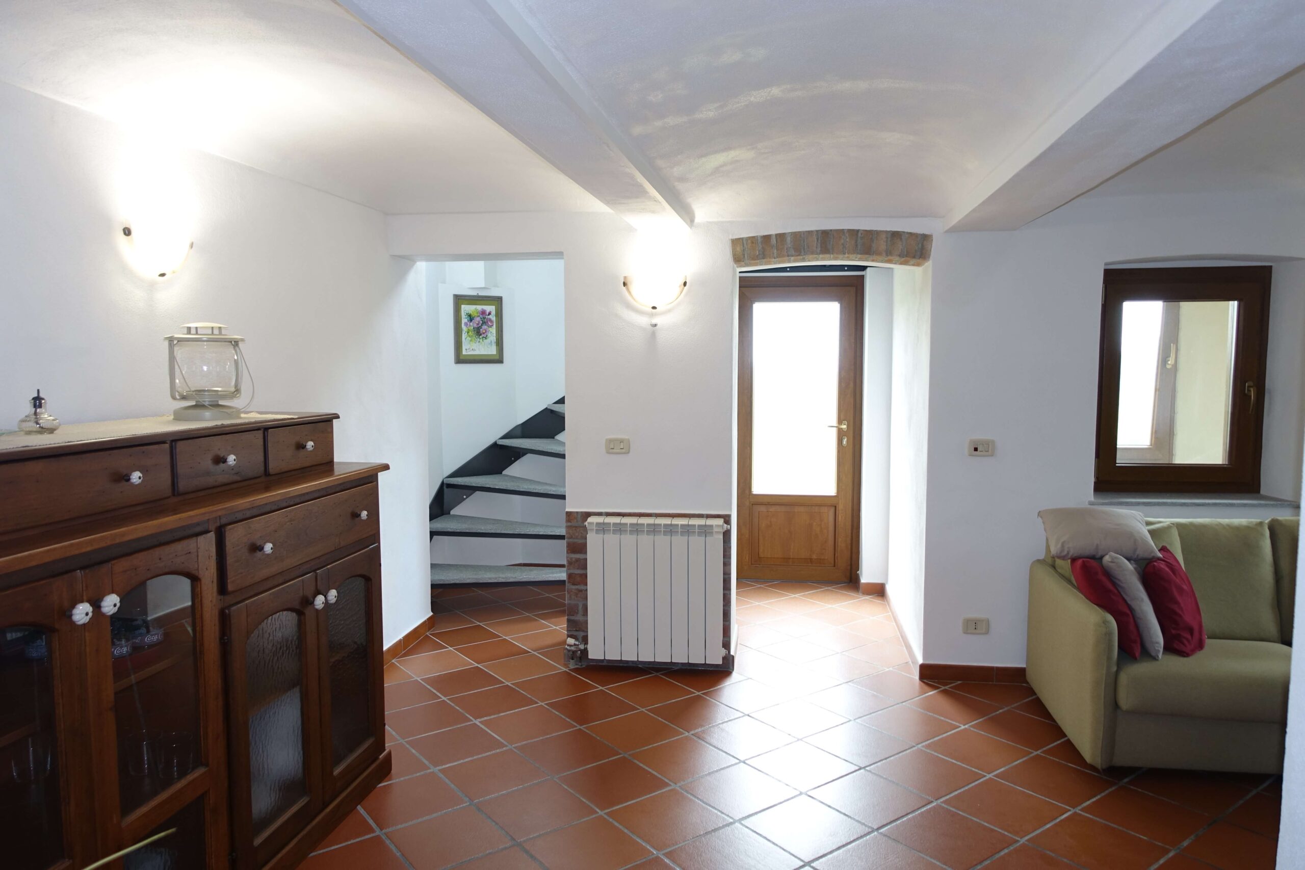 The house is set within a sprawling private garden of approximately 2,500 sqm, filled with lush fruit trees. The true highlight is the beautiful porch at the front of the house—the perfect setting for “al fresco” summer dinners while watching the sunset over the hills.