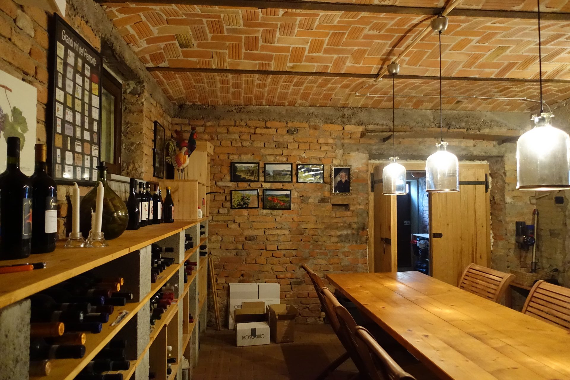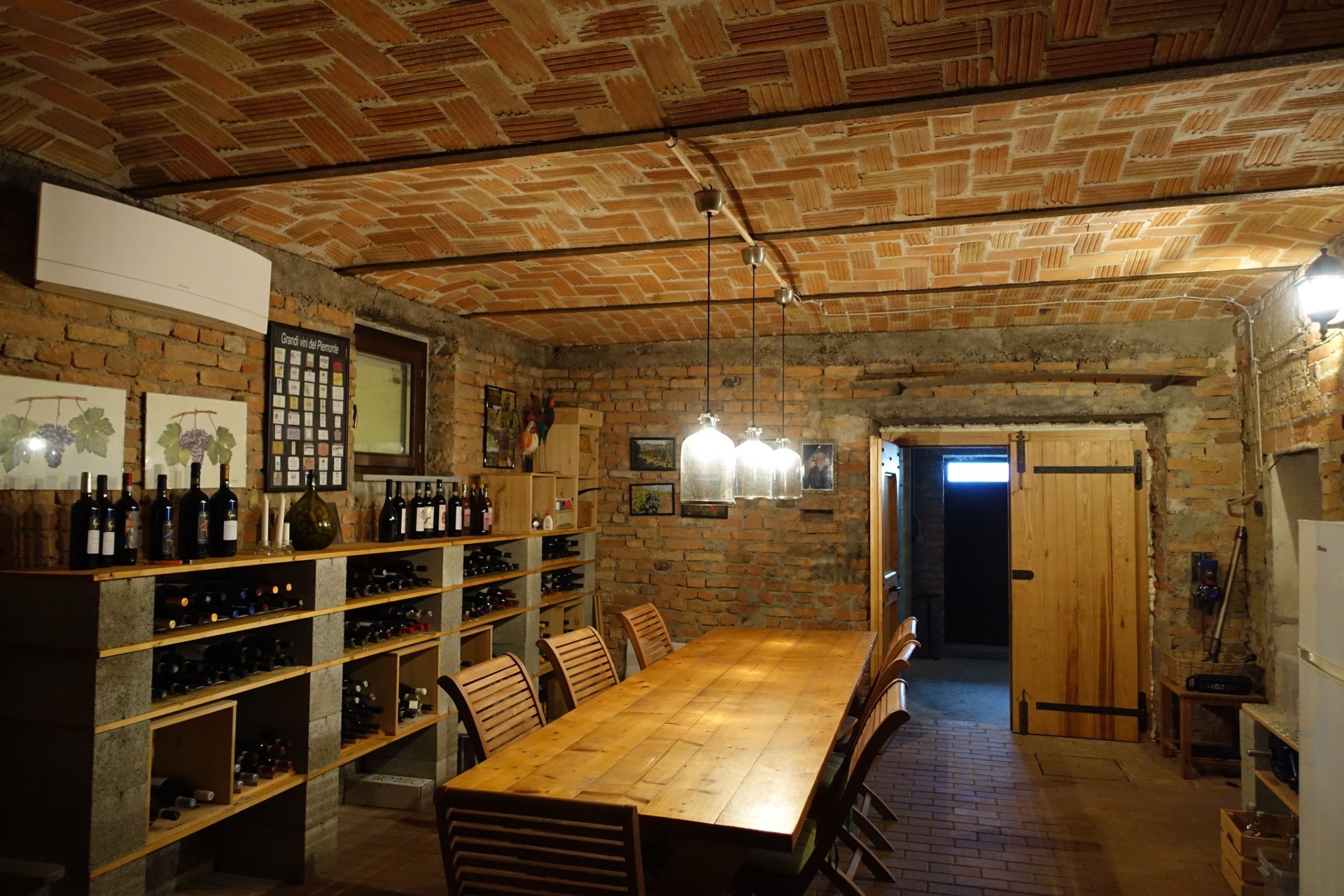 The charming winecellar, to the back of the house, and complete with a custom-made tasting table—offers an intimate, atmospheric space to share your favorite wines and meals with friends and family.