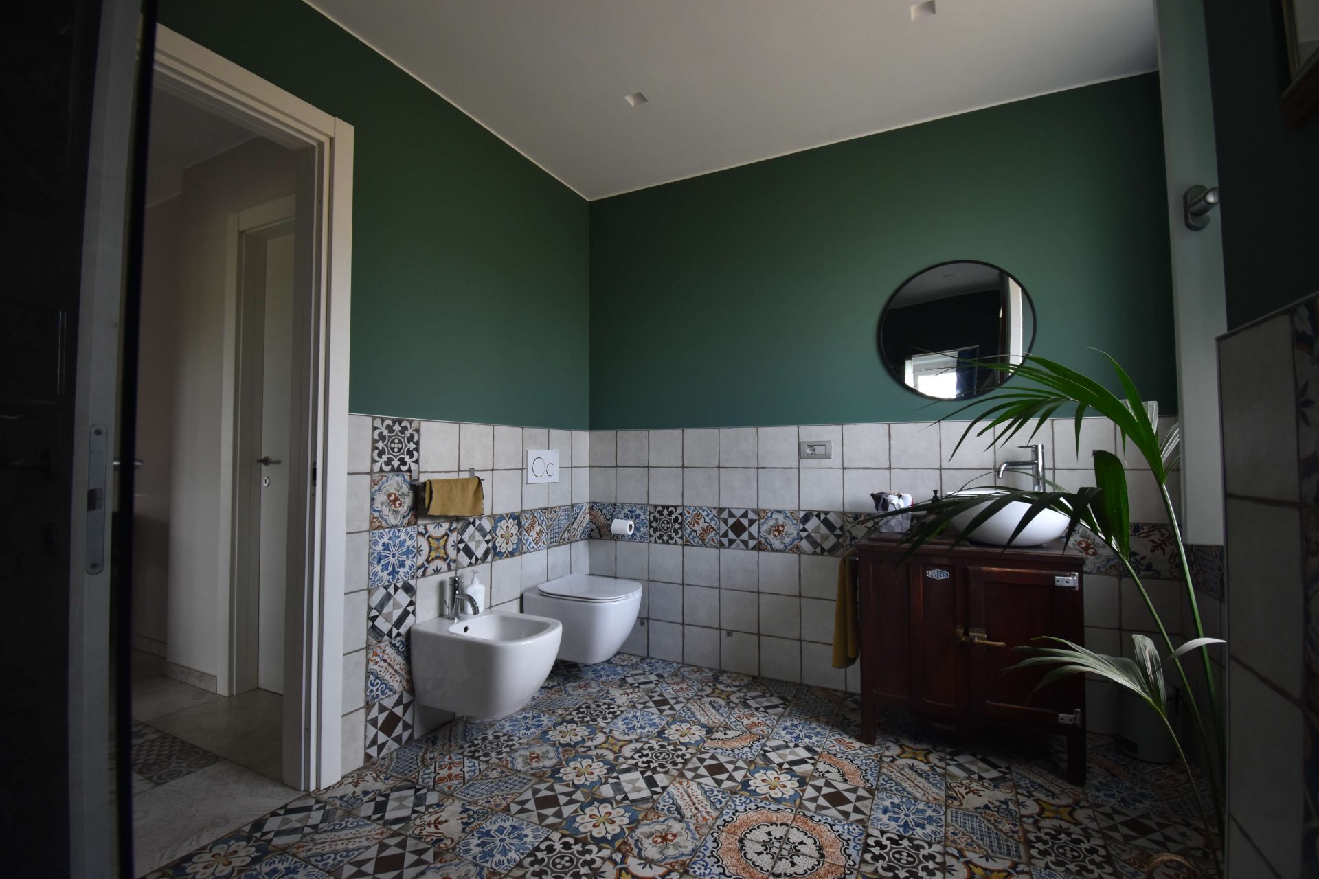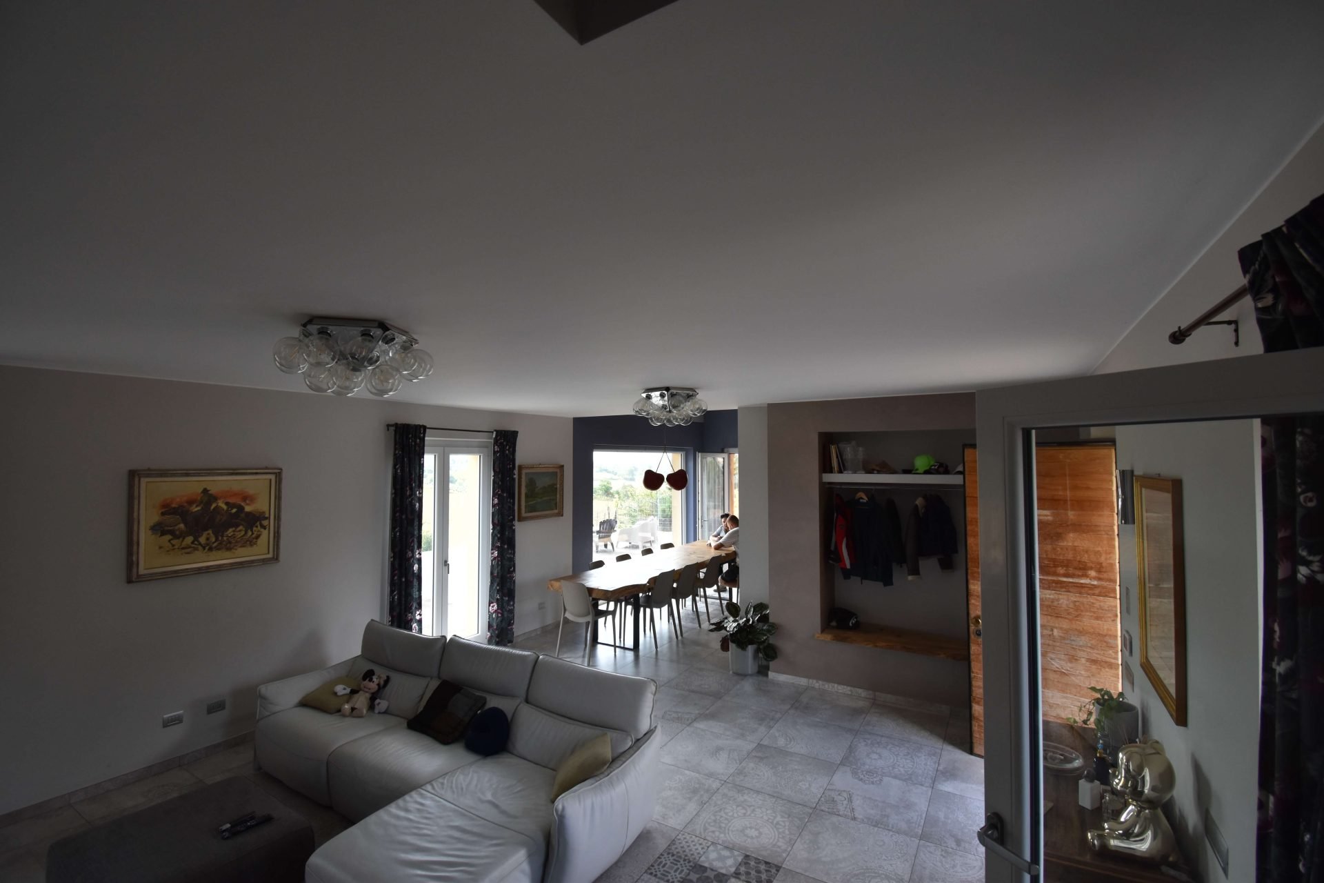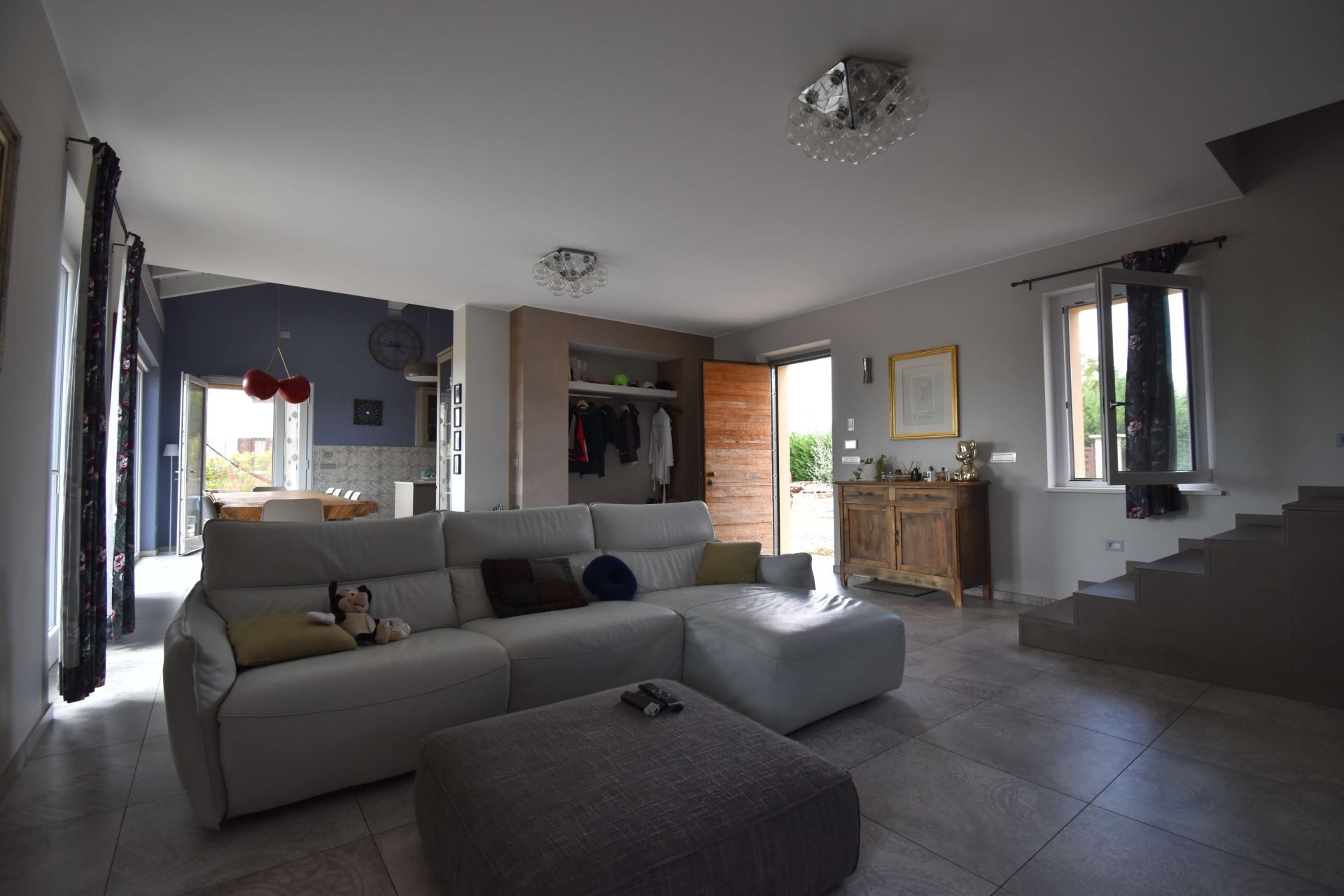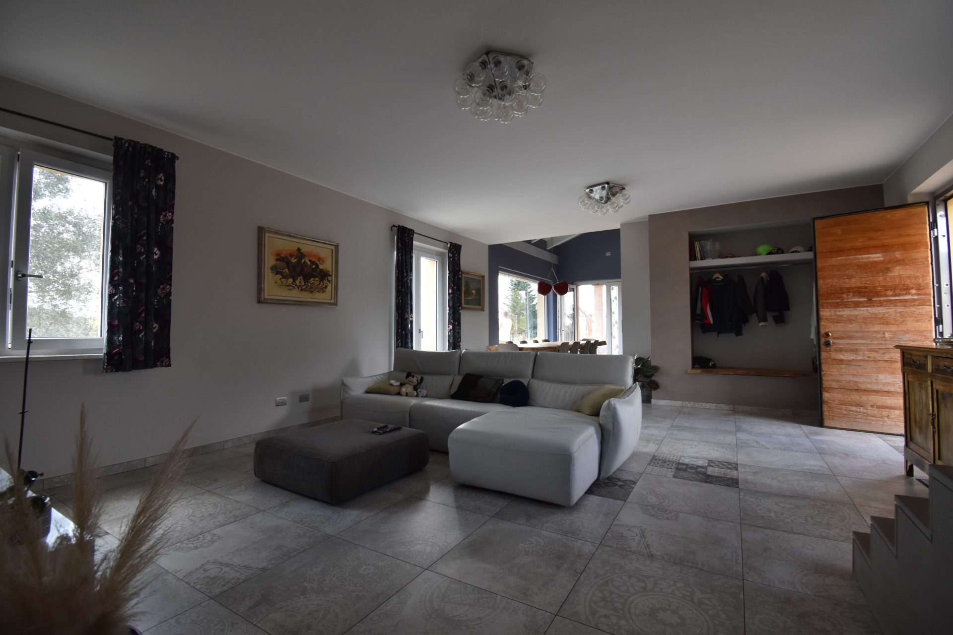 The driveway leads to an entire basement floor of 290 sqm, masterfully designed to host a cosy tavernetta with a wood-fired oven, a spacious garage/storage area, a cellar, a study/office, the utility room, and a laundry with bathroom.