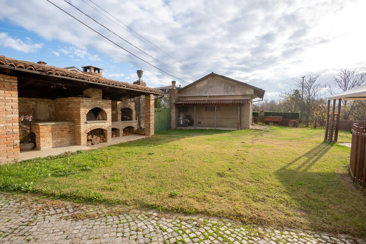 Opposite the residence stands a practical wooden outbuilding, perfect as a recreational and multifunctional space, or simply for storing firewood and garden tools while keeping the garden neat and organised.
