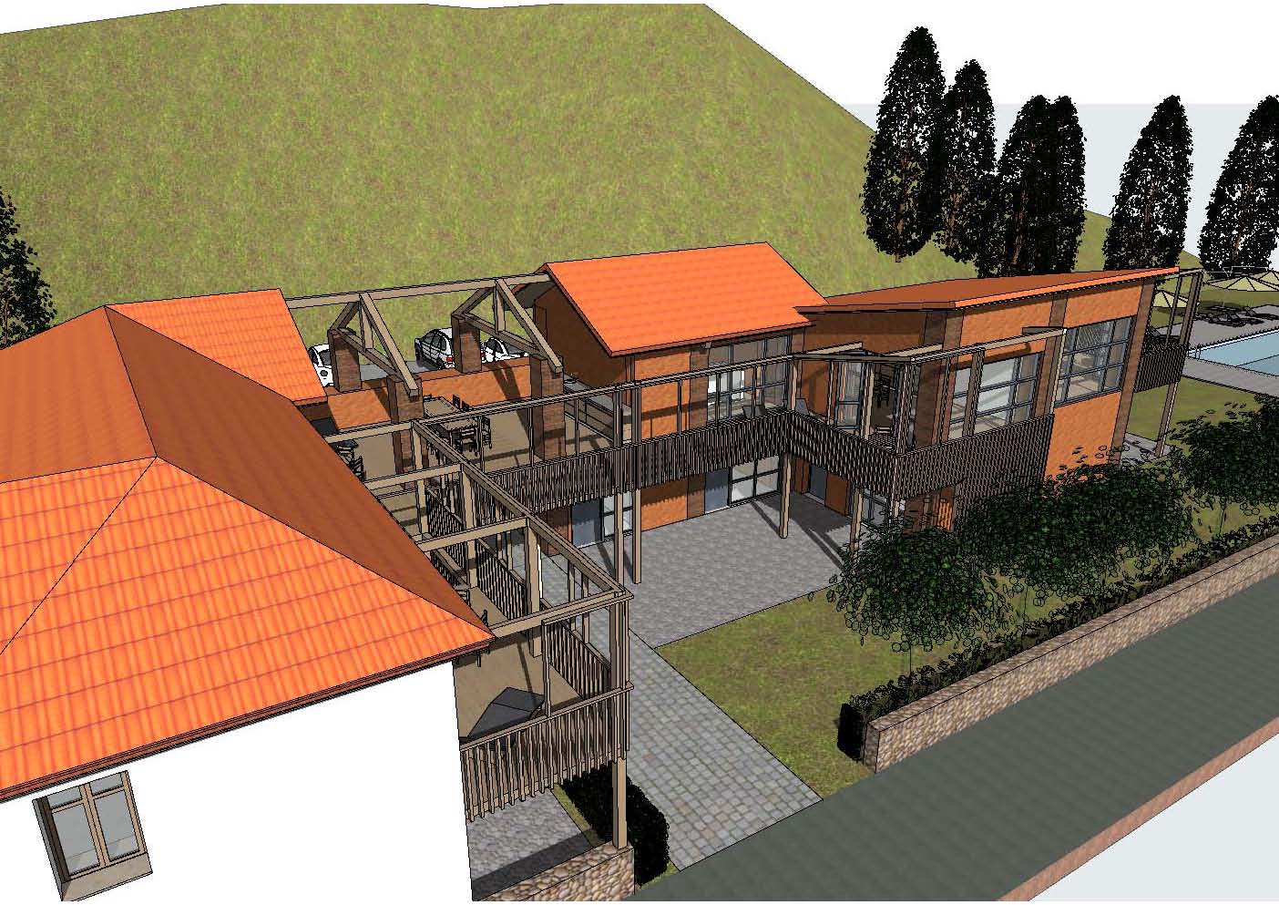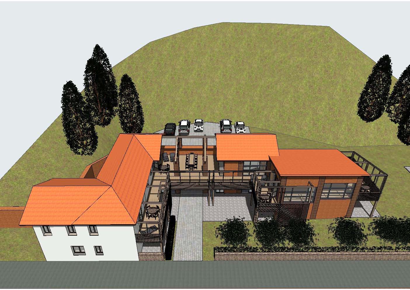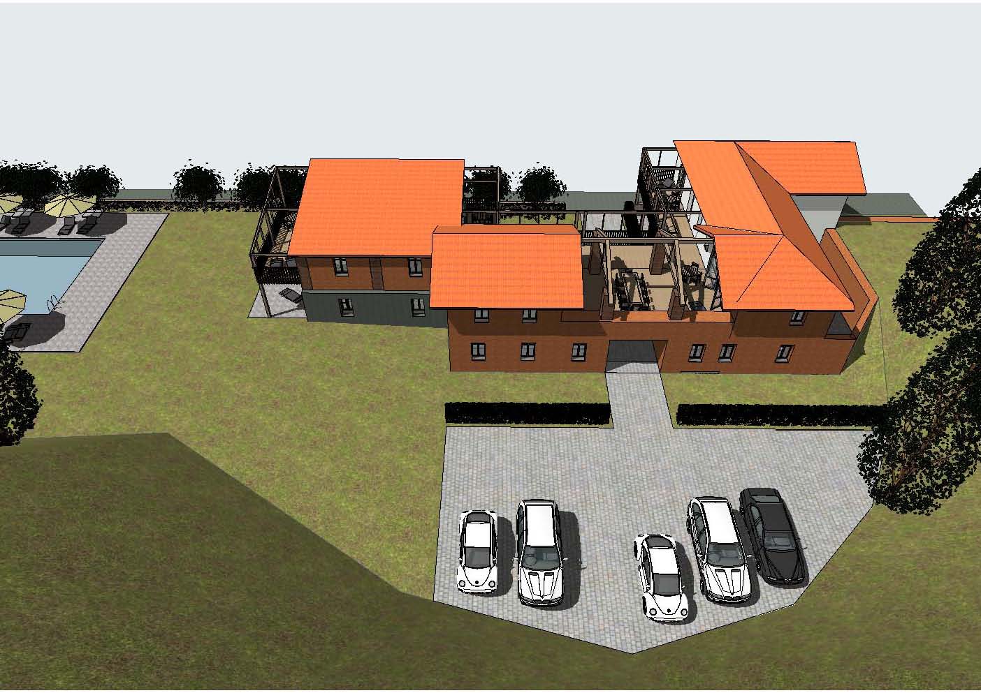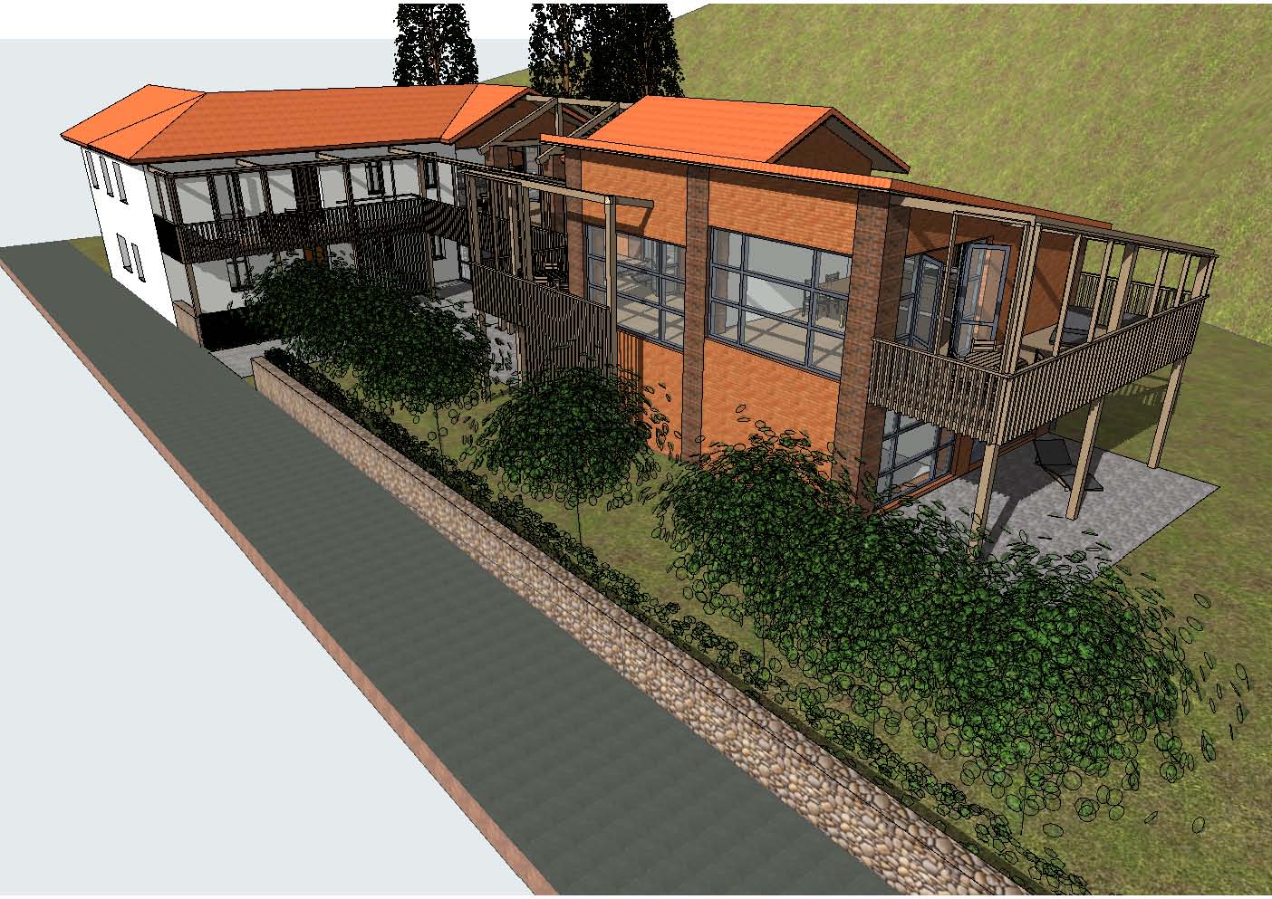 New structures in authentic brickwork, featuring large steel-framed windows for natural light and panoramic views