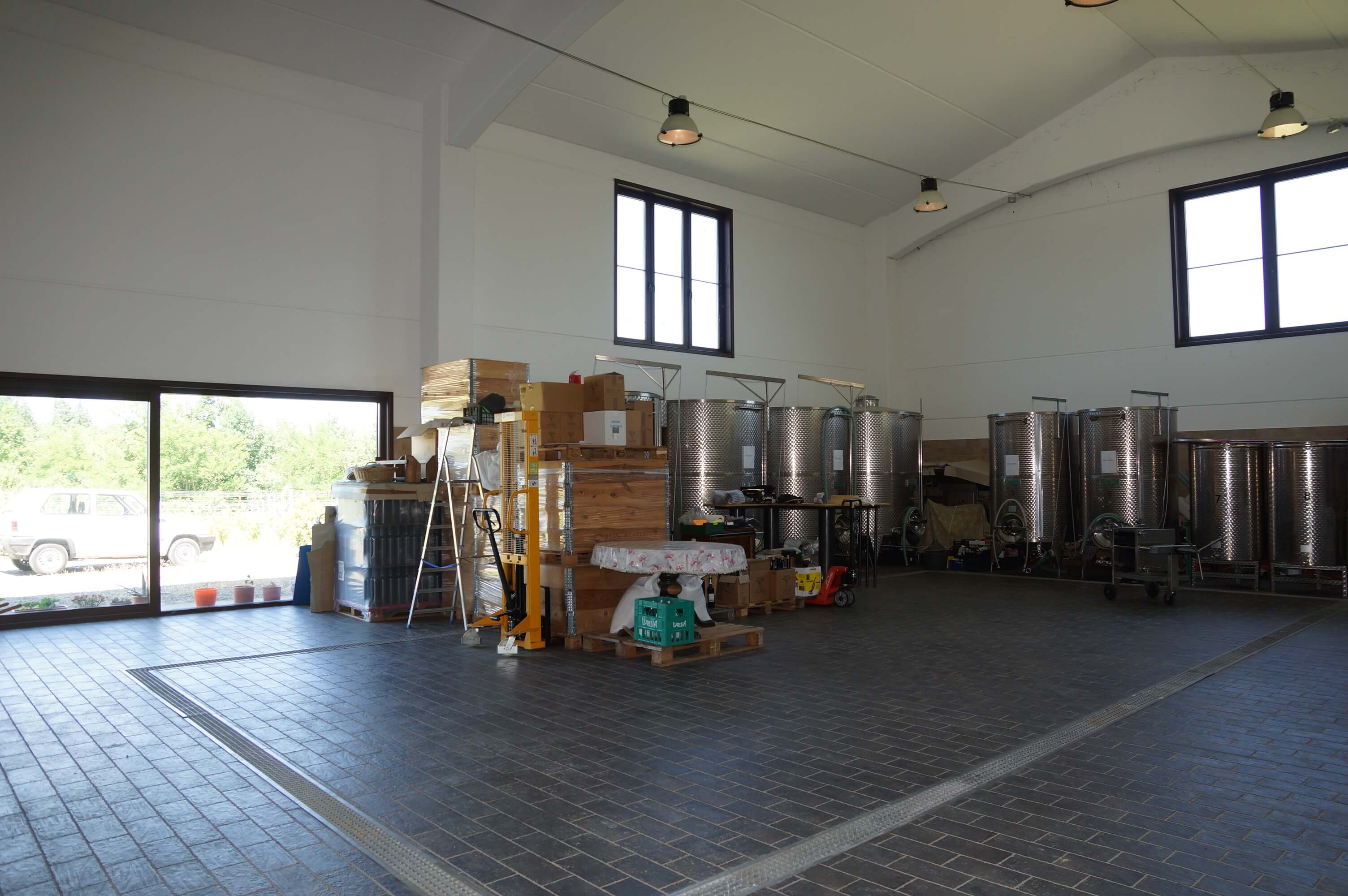 The building is divided in two parts, one is dedicated to the wineproduction with all that is necessary for a production of up to 50.000 bottles and has all equipment necessary for the production and also for the work in the vineyards.