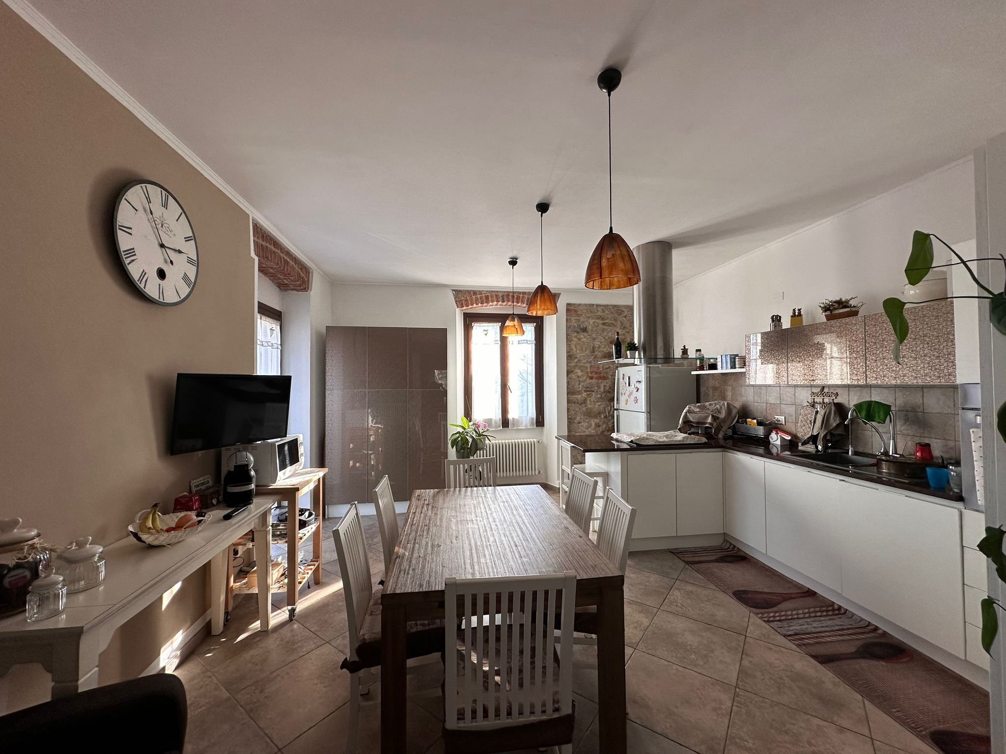 An internal staircase connects with the first floor where the main flat is located, consisting of a beautiful kitchen overlooking a large panoramic terrace, living room, 2 bedrooms, bathroom.