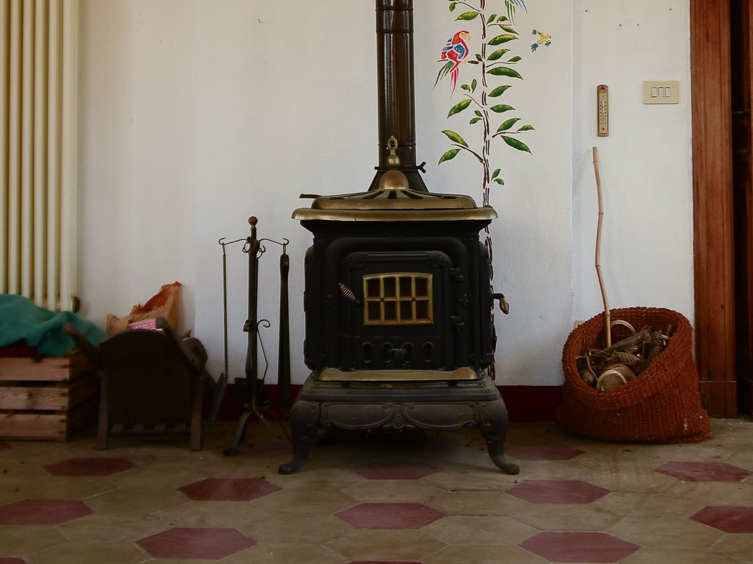 Once you step through the front door, it feels like entering another era: original cement tiles and parquet floors, frescoed walls, lofty ceilings, and a majestic wrought-iron staircase set the tone for this rare gem. Yet, the warmth and light that flood the rooms make it feel instantly like home.