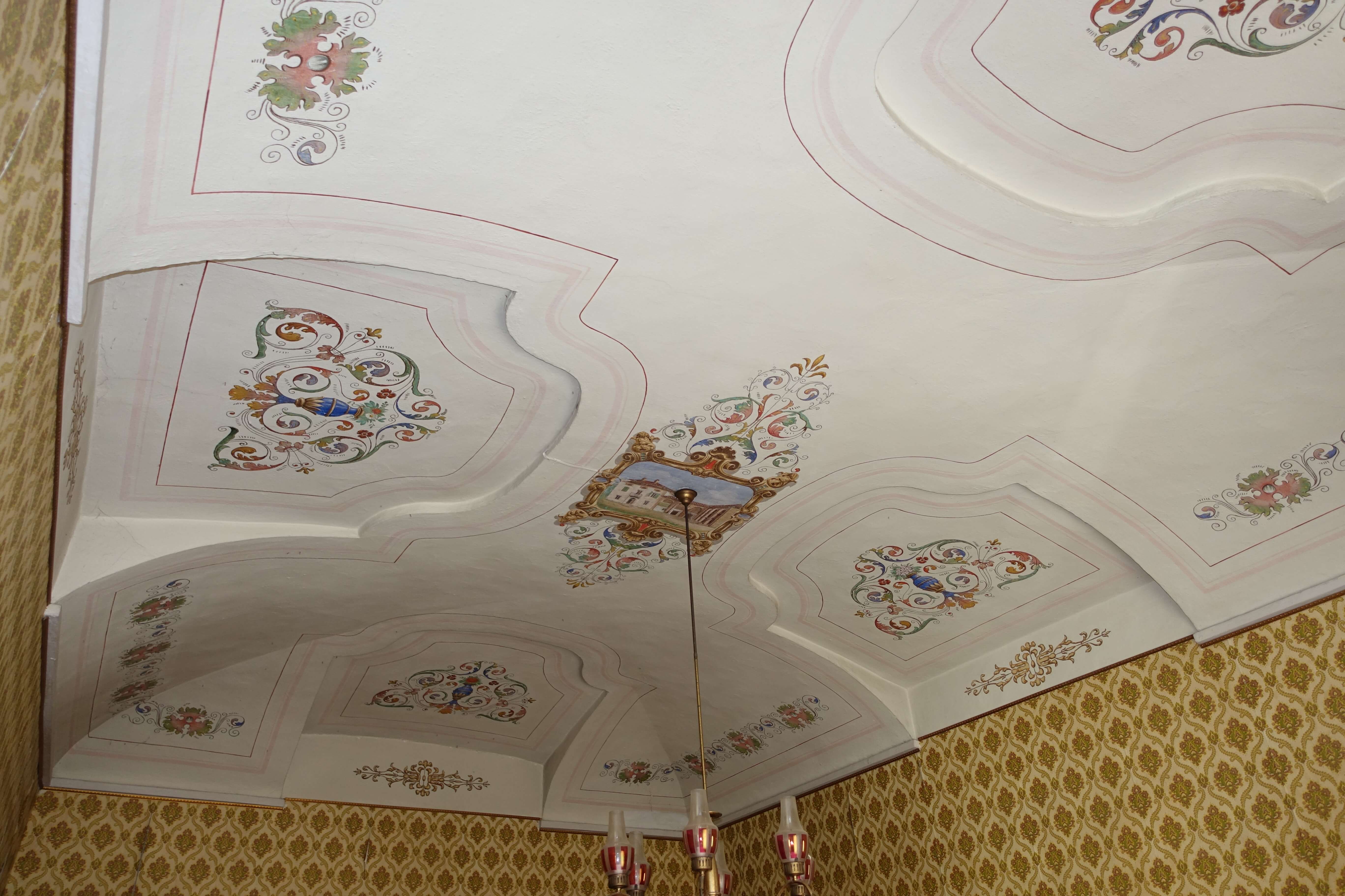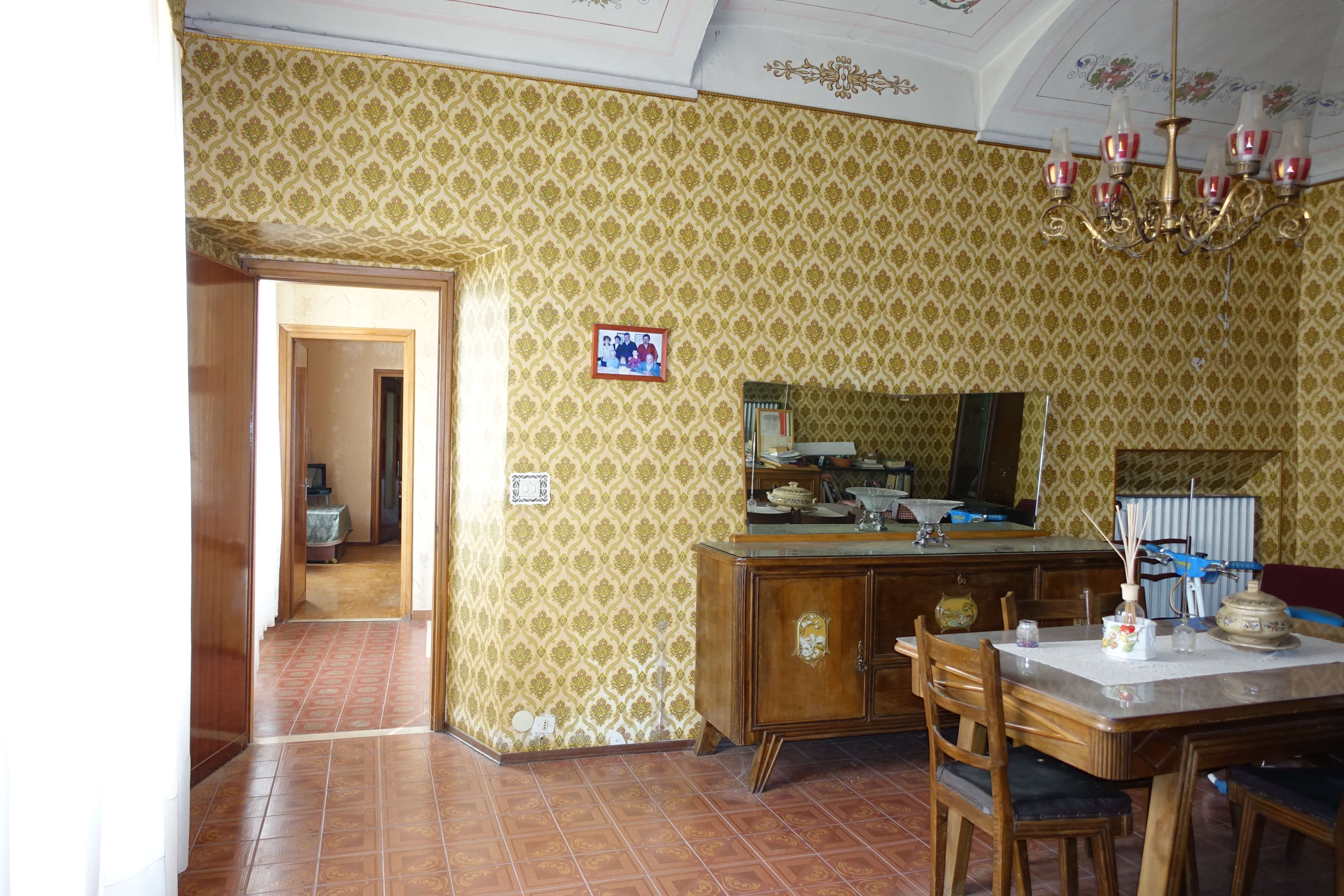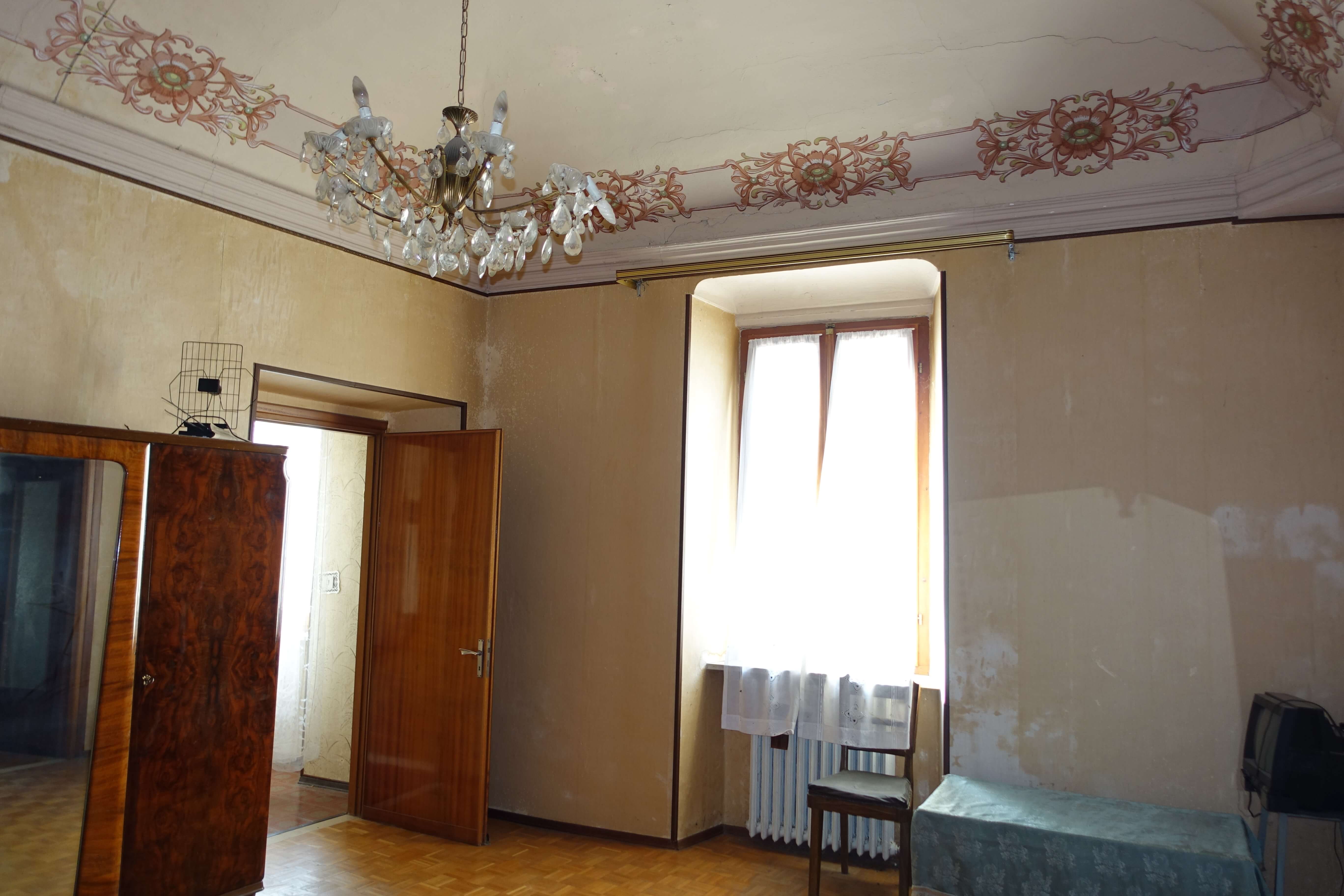 The property measures about 556 square meters and is spread over three floors. Externally, the facade is very well maintained and the rest of the house inside still has many historical details, such as the wonderful frescoes on the ceilings.