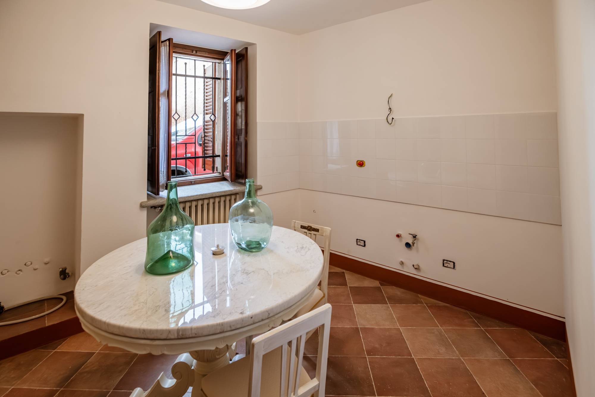 The entrance is large and bright and you have access to a small service bathroom, a small but functional kitchen and a very bright living room.