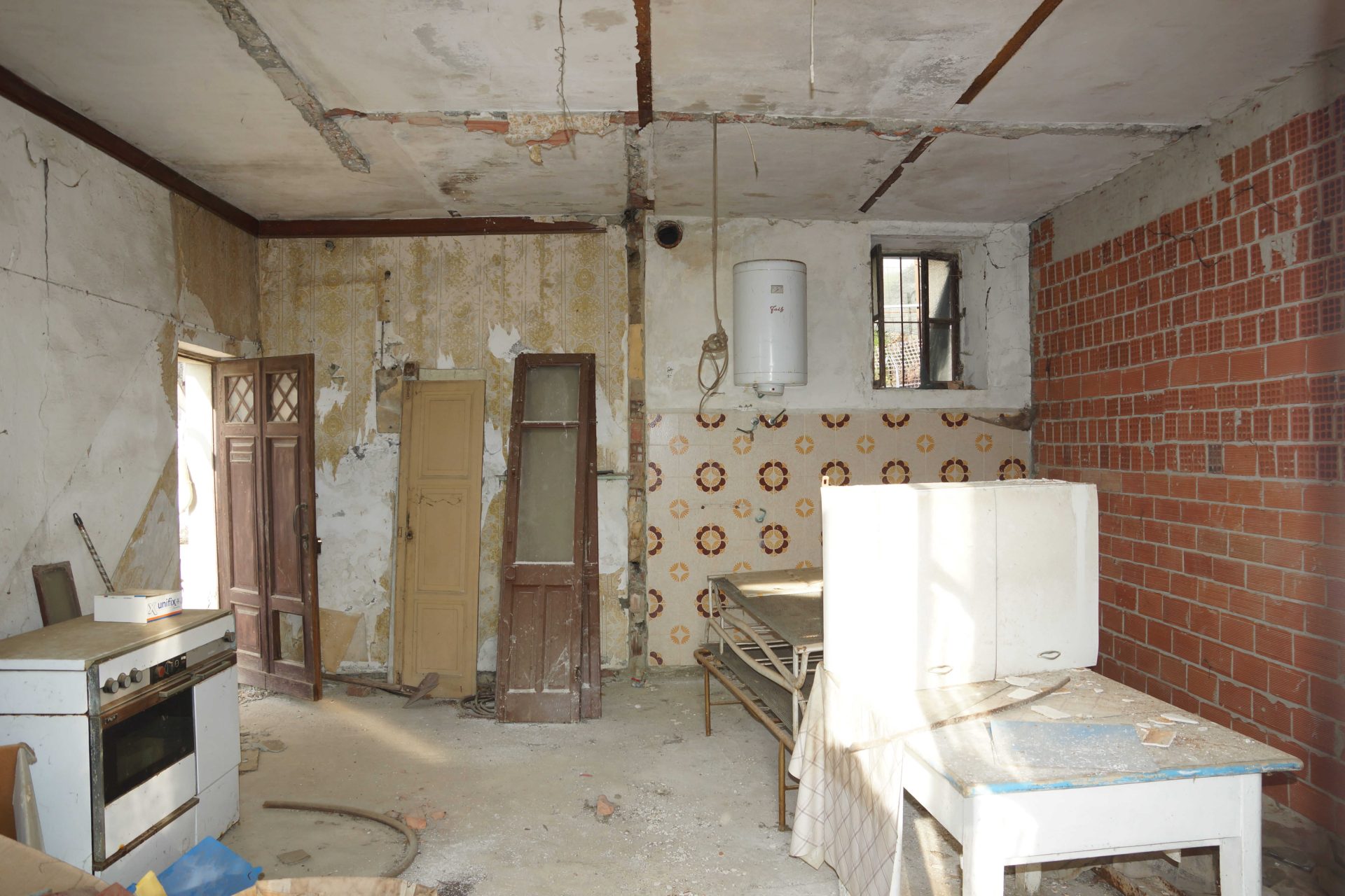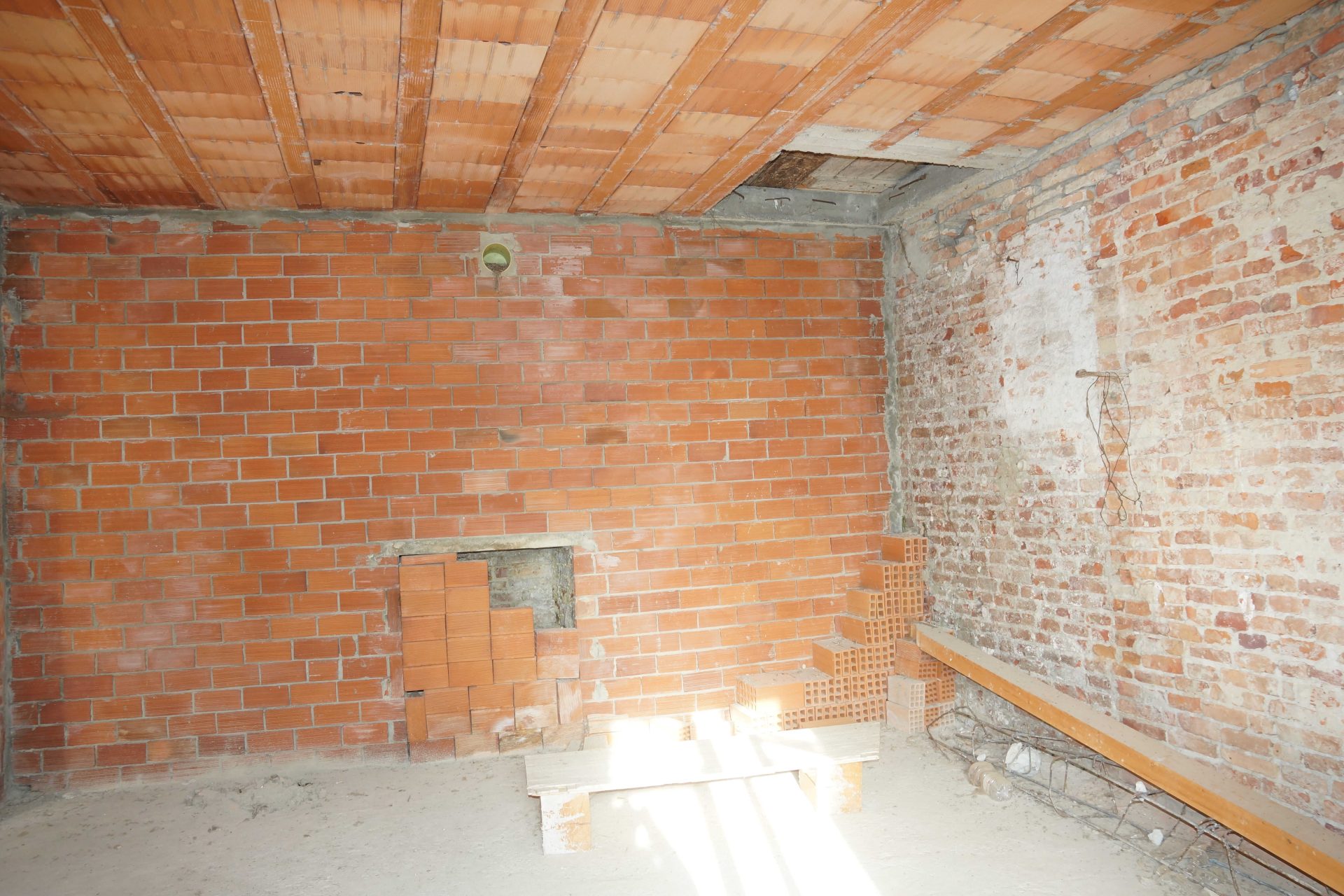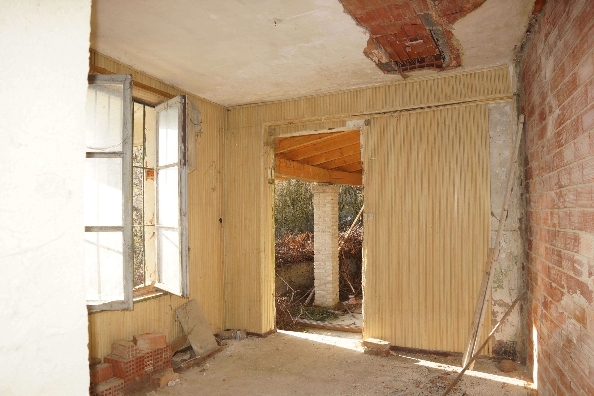 Beyond the gate, a panoramic terrace opens onto the rolling landscape, offering an inviting introduction to a house rich with potential. Inside, the current layout includes three generous rooms, each ready to be reimagined. The first-floor space allows for the possibility of opening up toward the loft, creating a striking setting with exposed wooden beams or even a mezzanine.