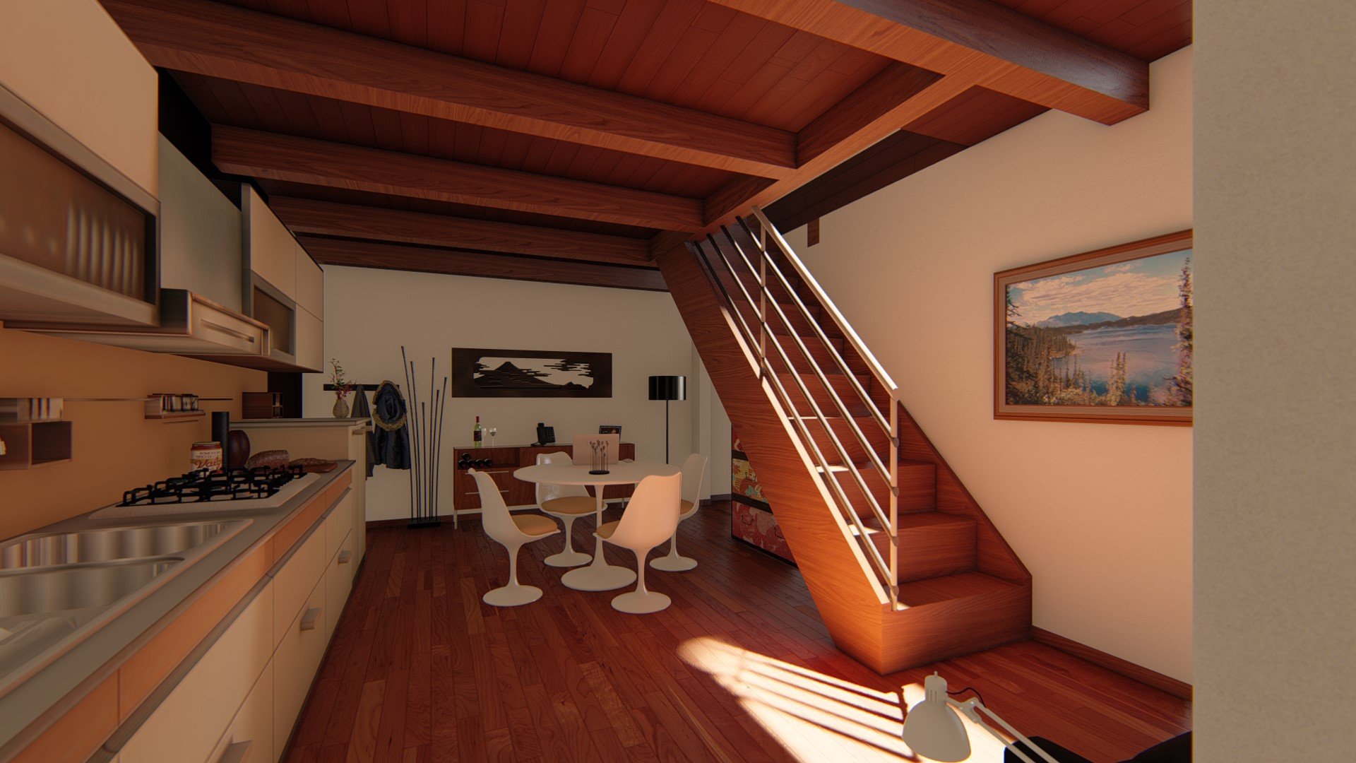 At the foot of Monte Rosa, in Gressoney, lovely and typical village of the Valle d’Aosta, in this newly constructed estate there is this spacious apartment on 2 floors composed by: large open space with living and kitchen, bathroom and a spacious room upstair used as another bedroom or as a cozy living.