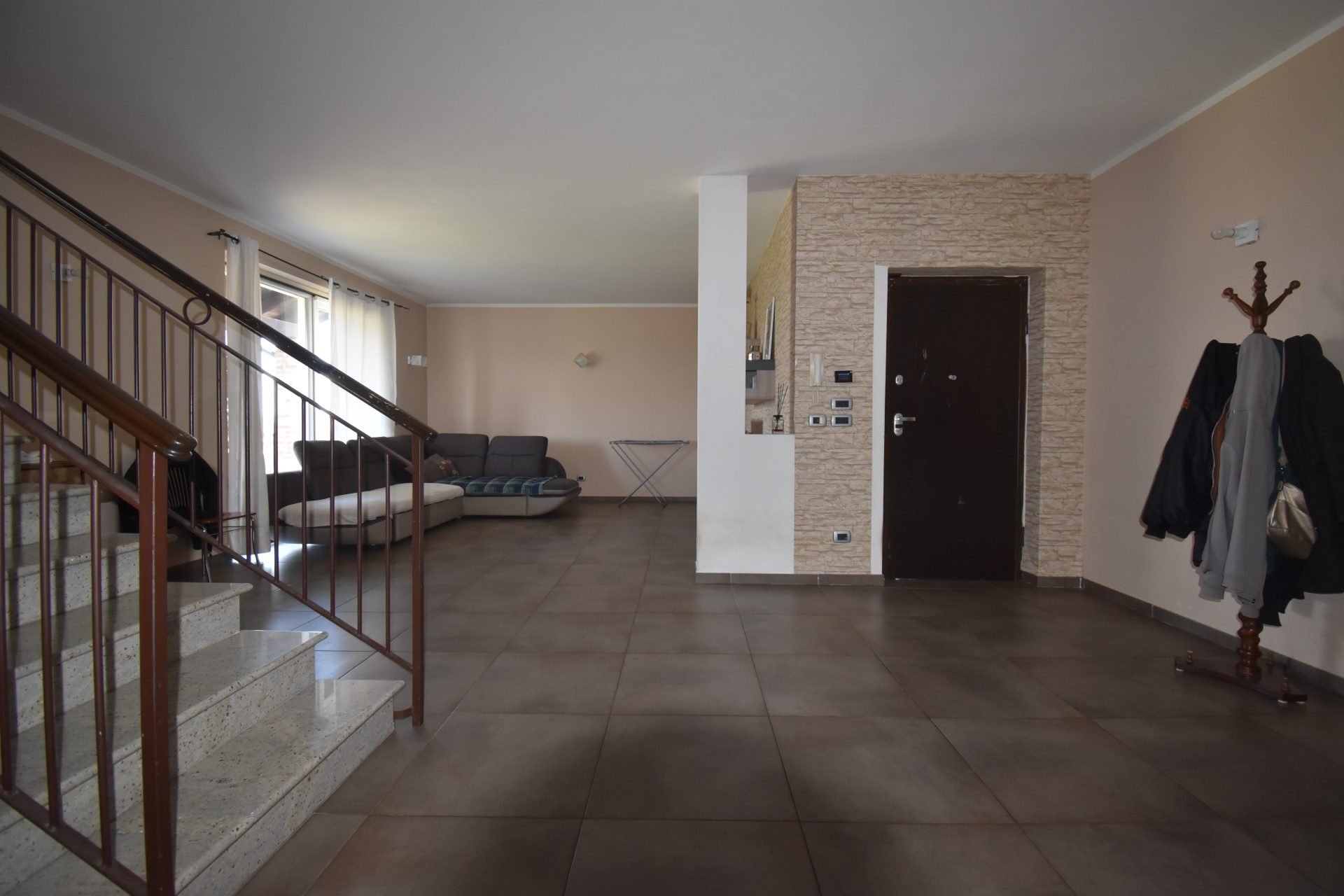 The villa’s clean, contemporary lines—soft-hued façades and a pitched roof—welcome light into interiors that are both bright and gracious. Here, modern design meets the warmth of exposed brick, weaving continuity and character through every room.
