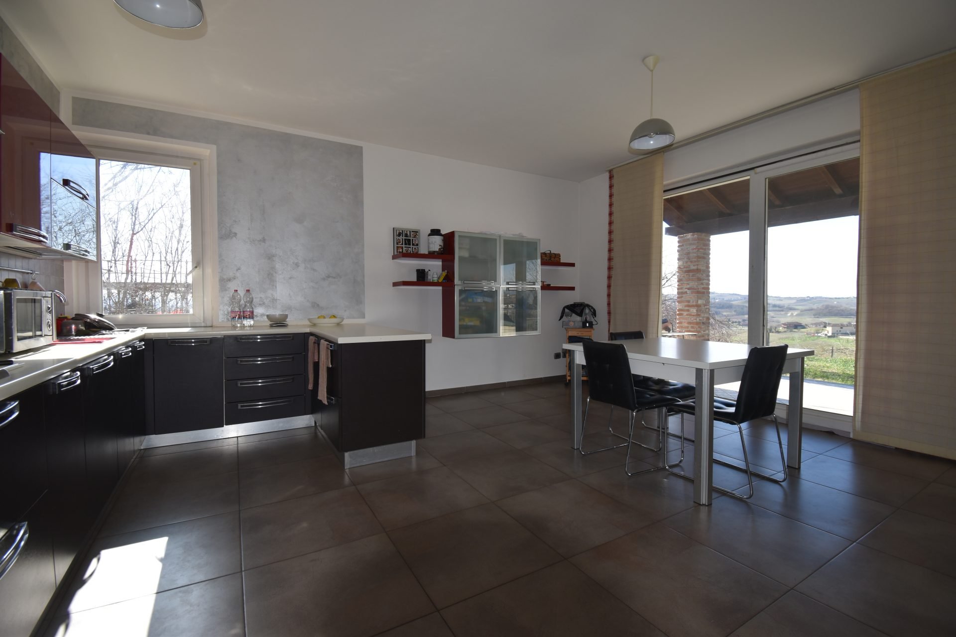 In the heart of Monferrato, where gentle hills rise and the air carries a rarefied silence, this villa sits in perfect harmony with its surroundings. From its panoramic perch, the gaze stretches over rolling greenery to the distant Monviso, creating a serene dialogue between architecture and landscape.
