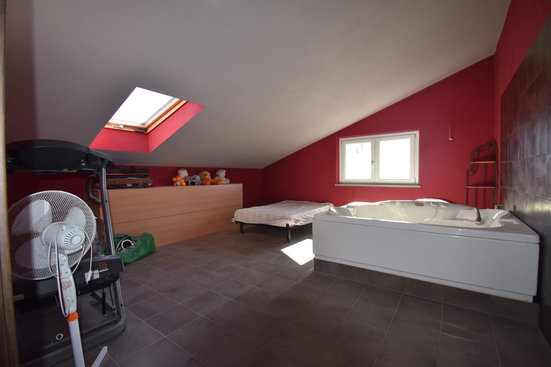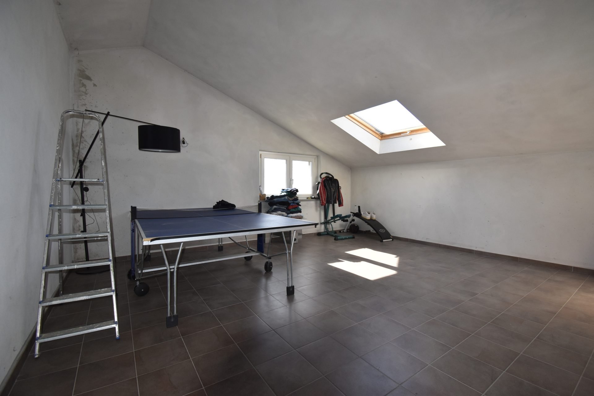 First floor: an airy corridor leads to two bedrooms, one opening onto a covered terrace that extends the living space, offering intimacy and shelter; a bathroom and a large attic room with a height of 2.15 m complete this level.