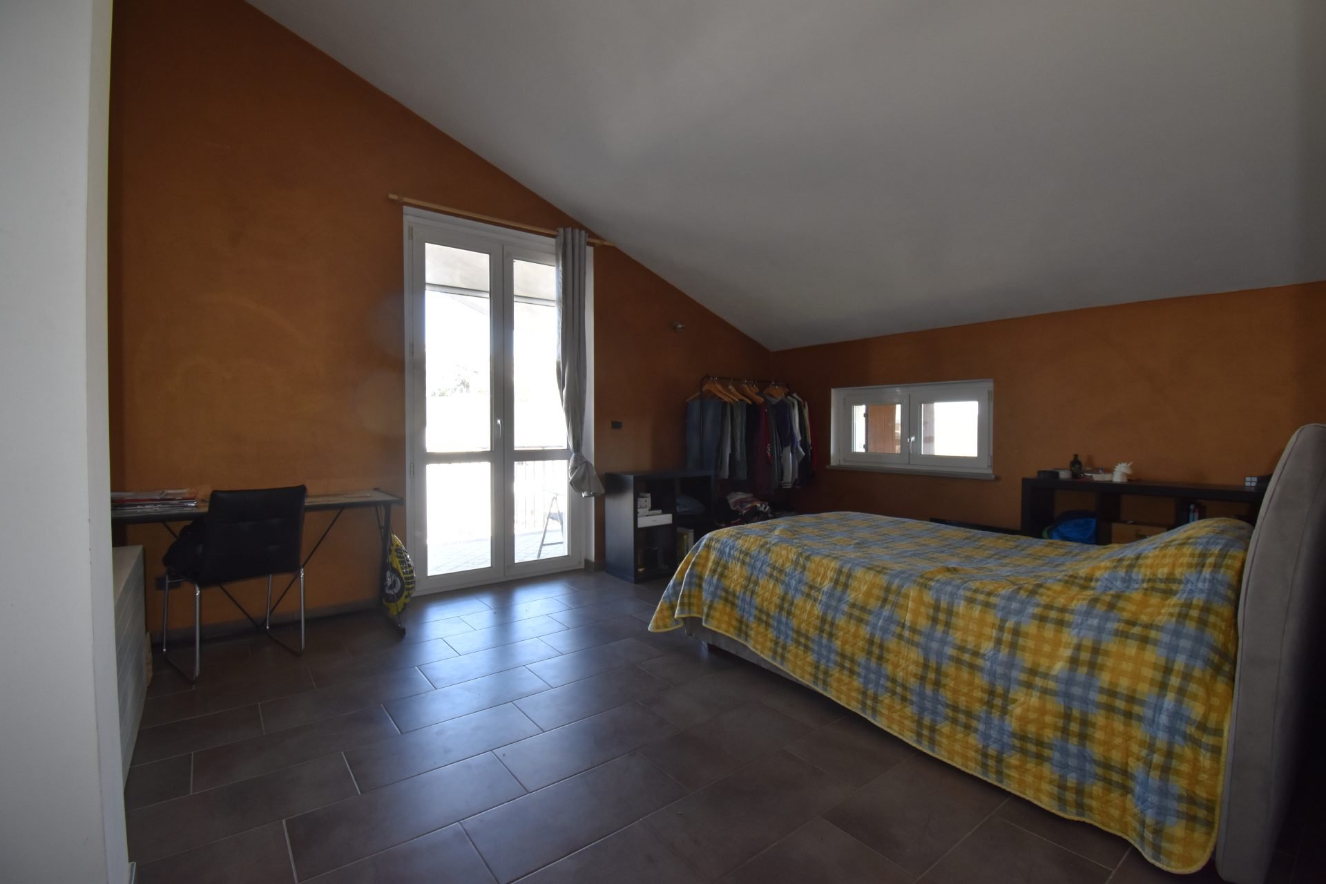 Ground floor: a welcoming entrance opens onto a luminous living room framed by a window with views of the Alps; a fully equipped kitchen, bathed in light, extends to a wide portico, an elegant space for entertaining or savoring the outdoors; hallway, two generous bedrooms, and a bathroom.