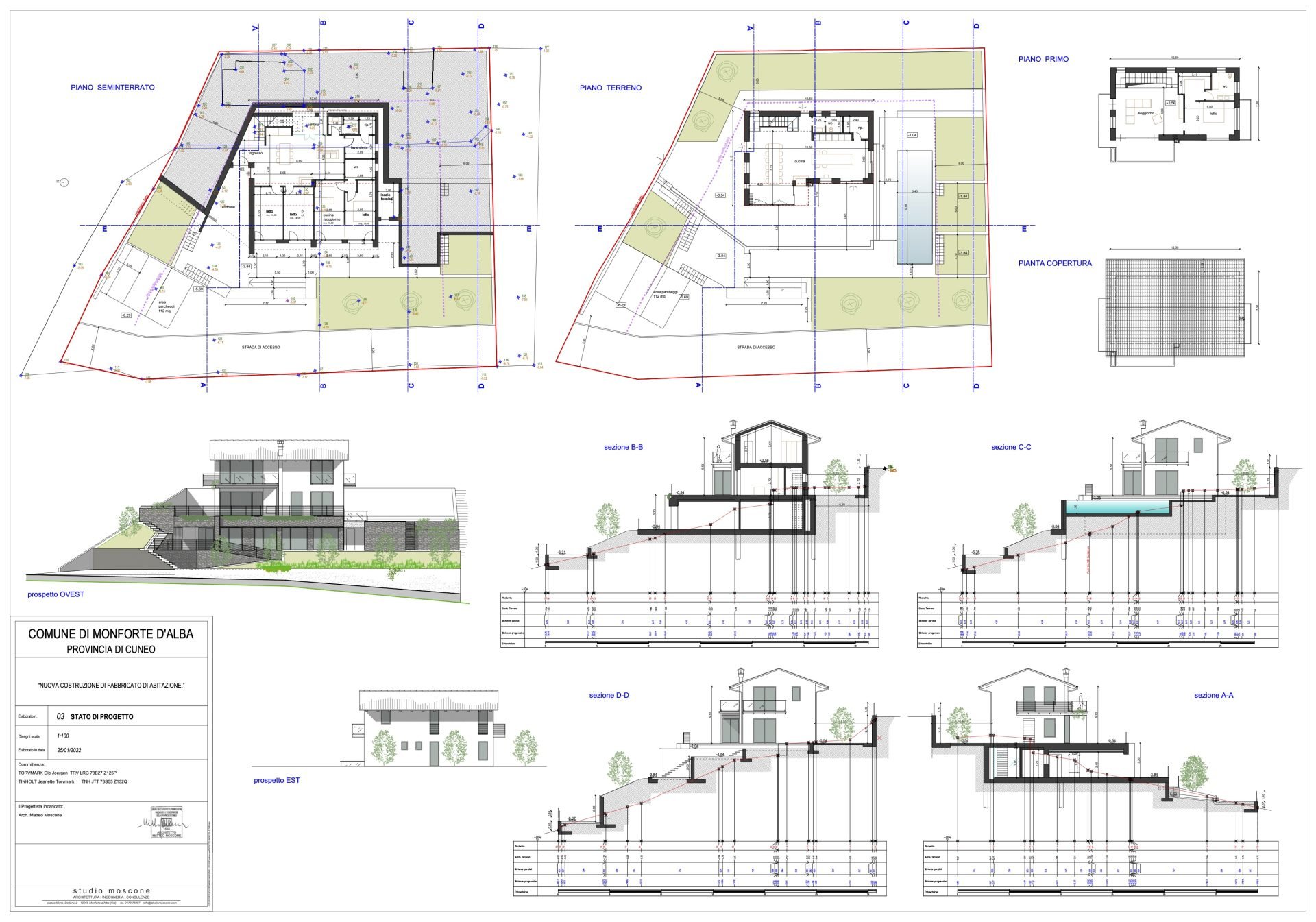 The villa will be surrounded by a landscaped garden and a panoramic terrace, perfect for moments of relaxation or al fresco dining. A swimming pool measuring 3.4 x 10.95 metres invites you to enjoy the mild climate of the Langhe, while a 112 sqm dedicated parking area completes the property.