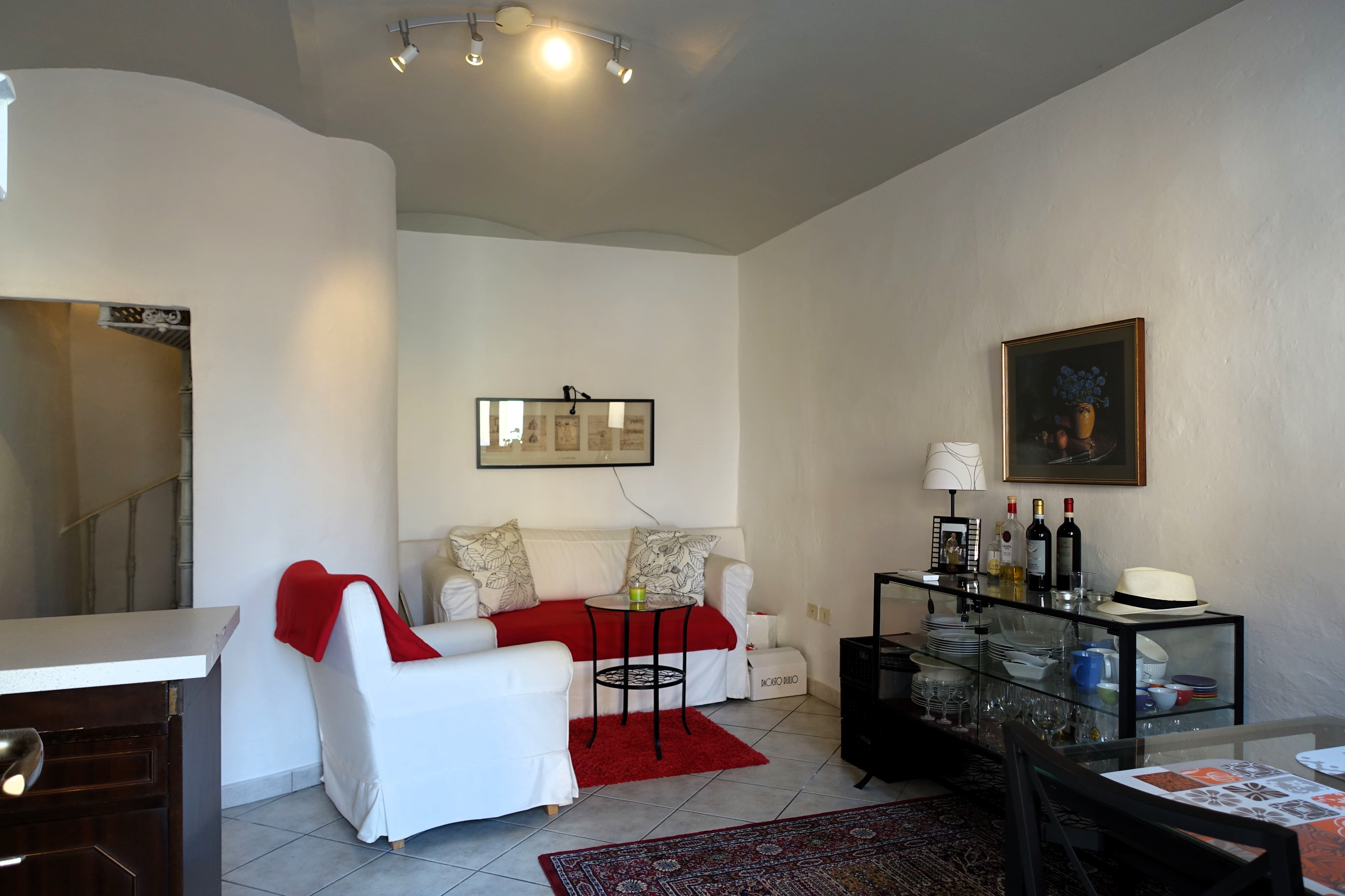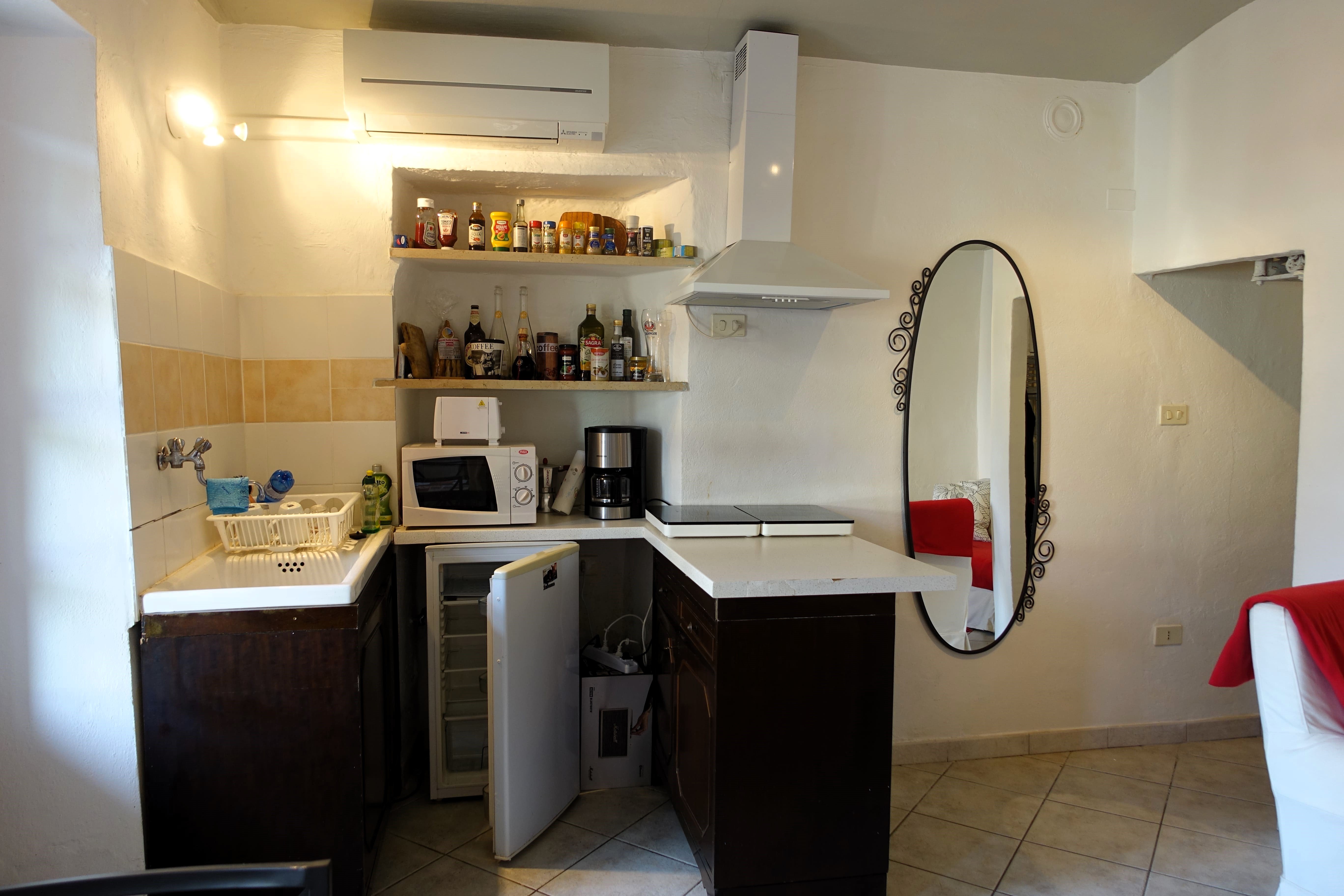 The house on the ground floor has a kitchen with living room and on the first floor, connected by a spiral staircase, there is the bedroom with bathroom.