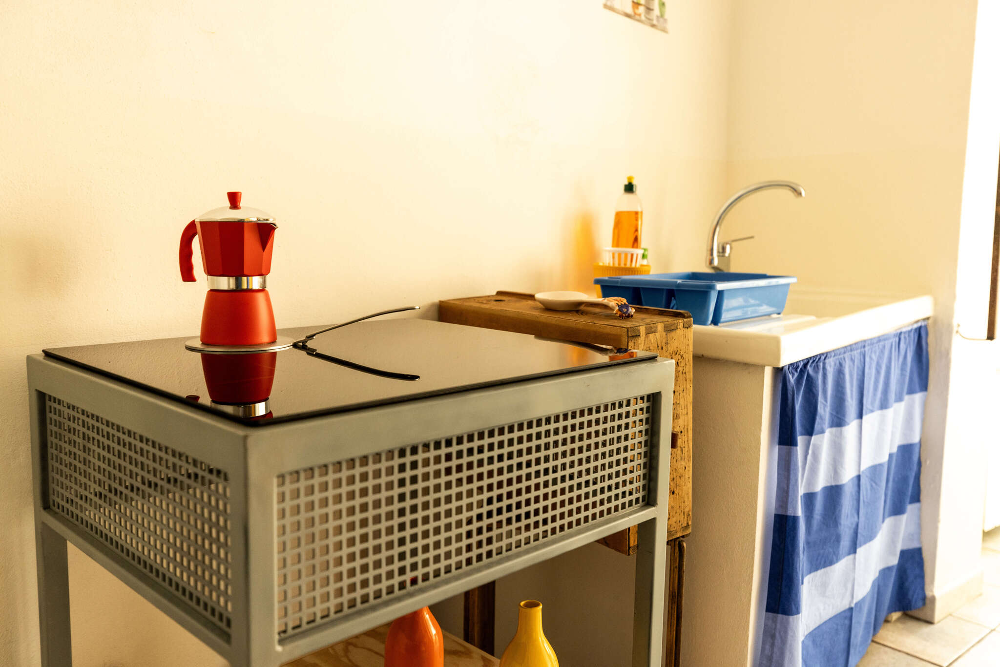 The main house consists of a spacious lounge, a practical kitchen and the true gem, the “winecellar” which is perfect for aperitivo or candlelight dinners! Upstairs, two bedrooms, a bathroom and the balcony.