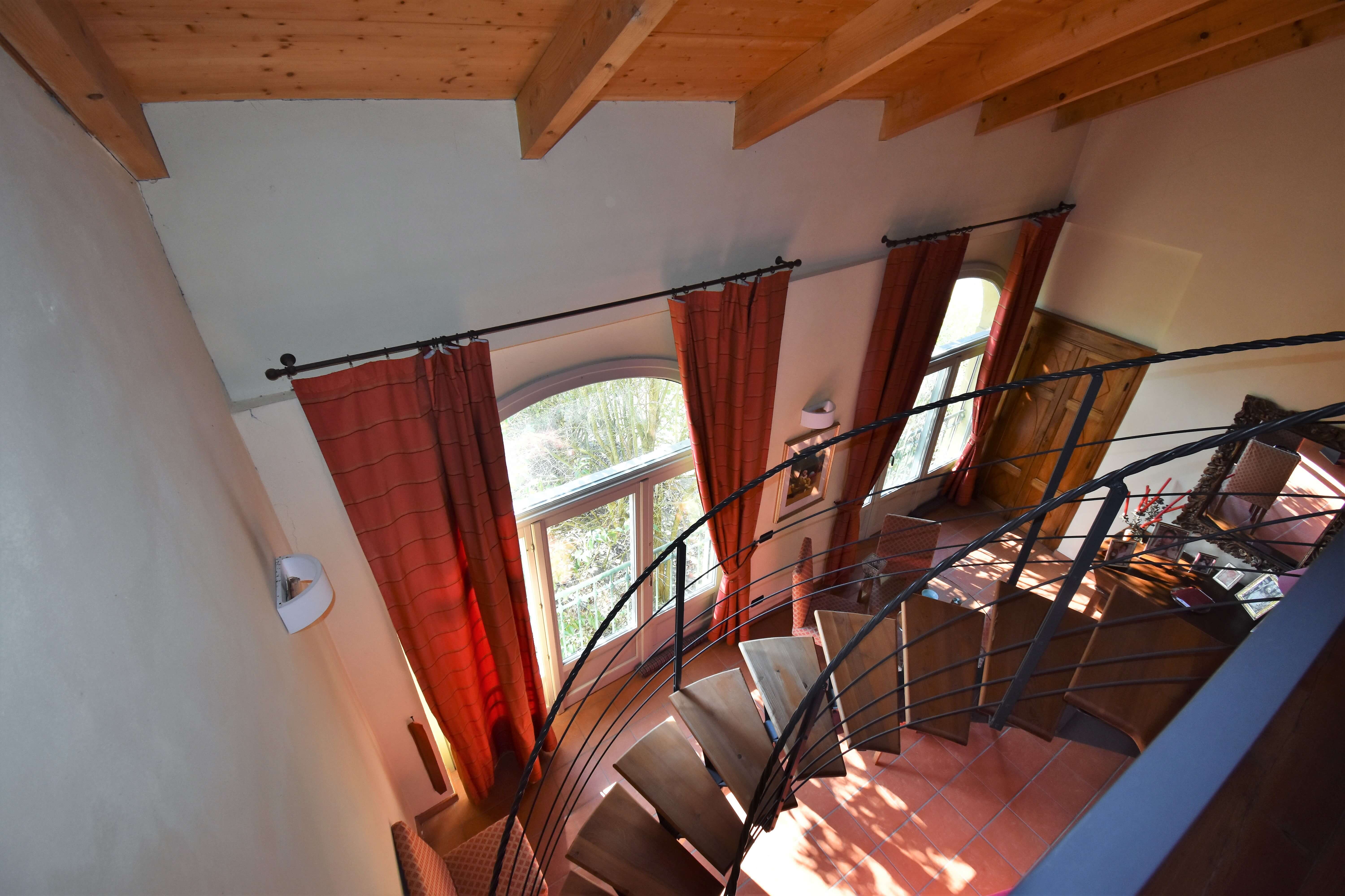 The floors are connected by a magnificent stone and wrought iron staircase and the first is brightened by a veranda with a breathtaking view and the second by a very light balcony.