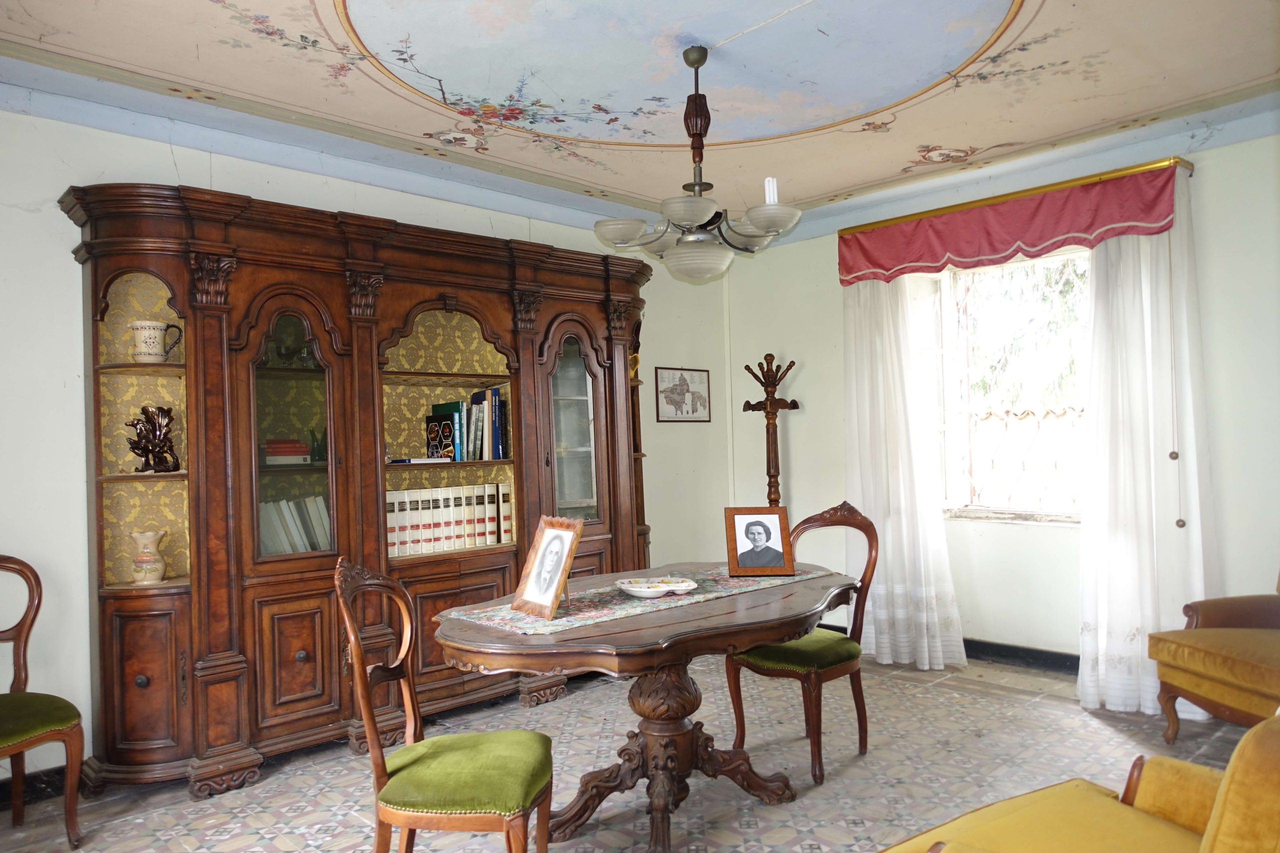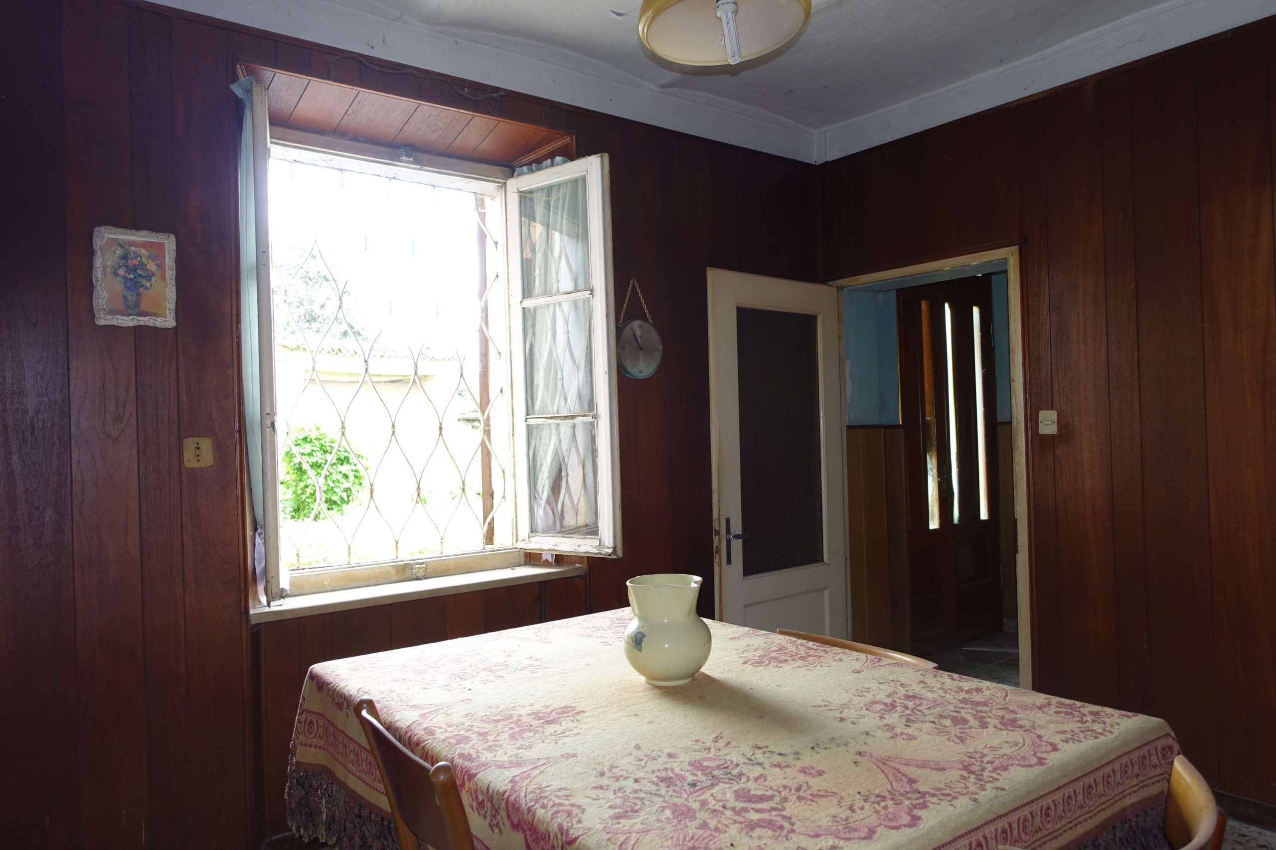 Ground floor – Upon entering the gracious home, you’re welcomed by a sunny living room to your left; a kitchenette and an adjoining dining area to your right. A porch, a cellar with original cement wine vats (once used by the current owners to produce wine from their own vineyards), a second porch, and two storage rooms complete this floor.
