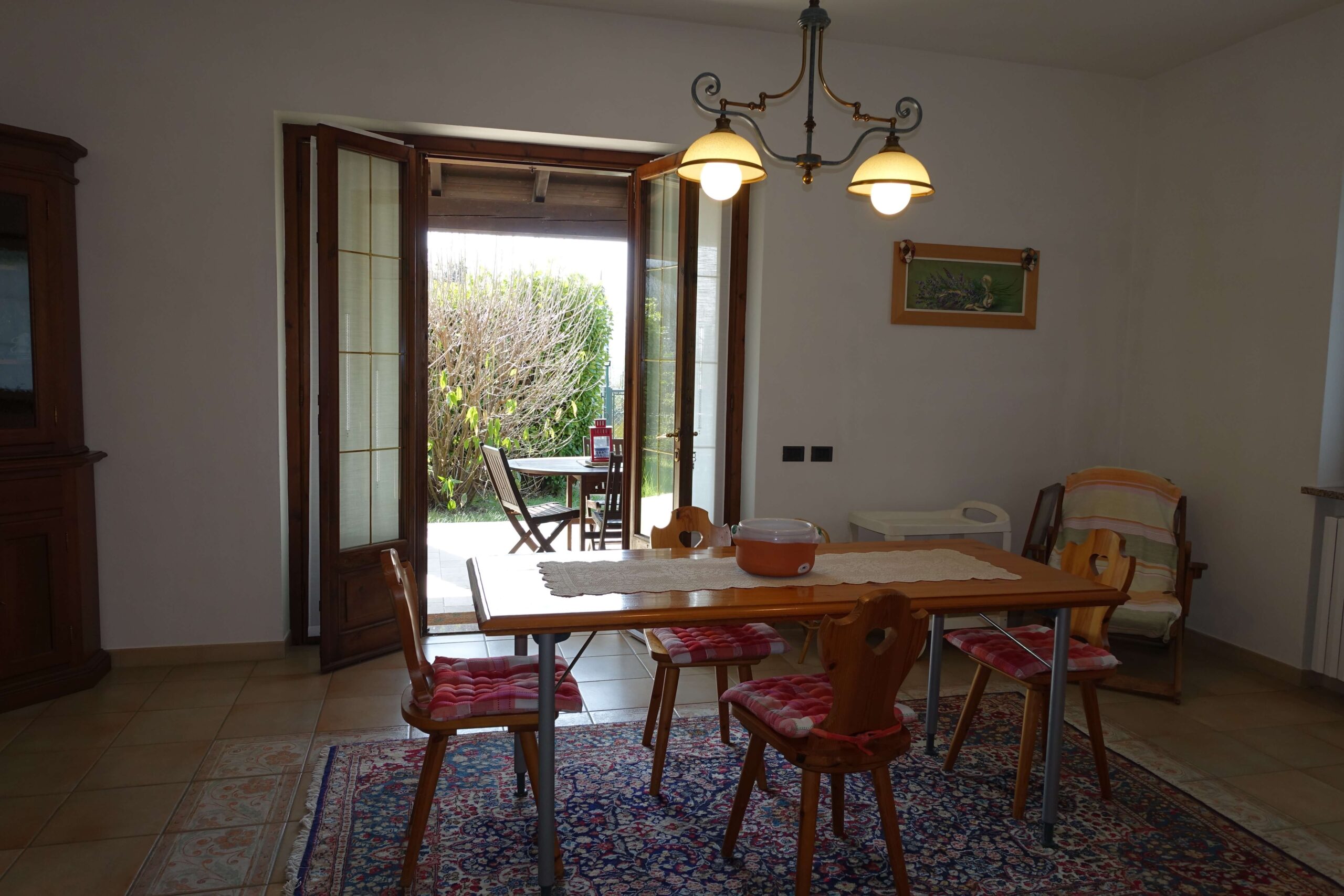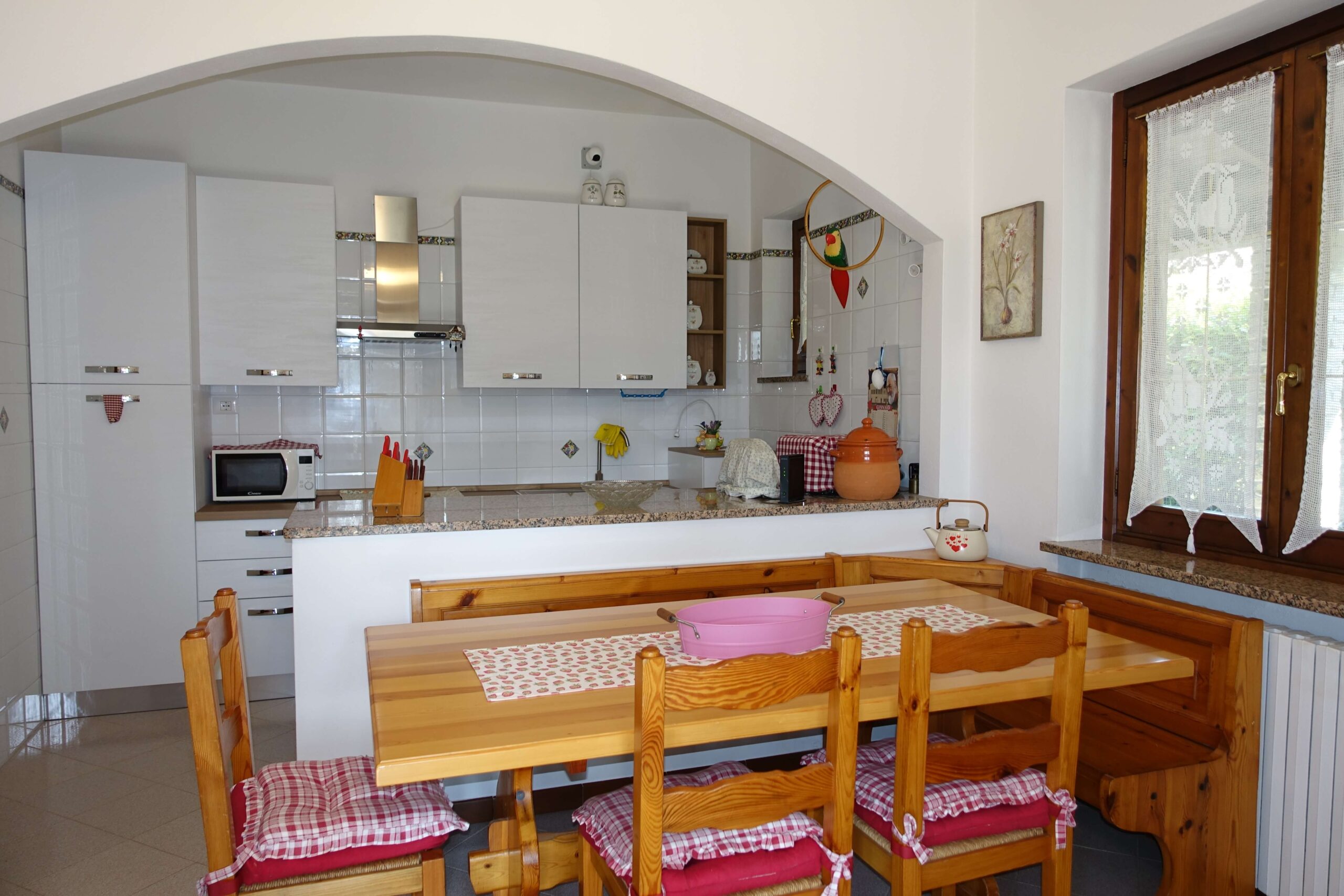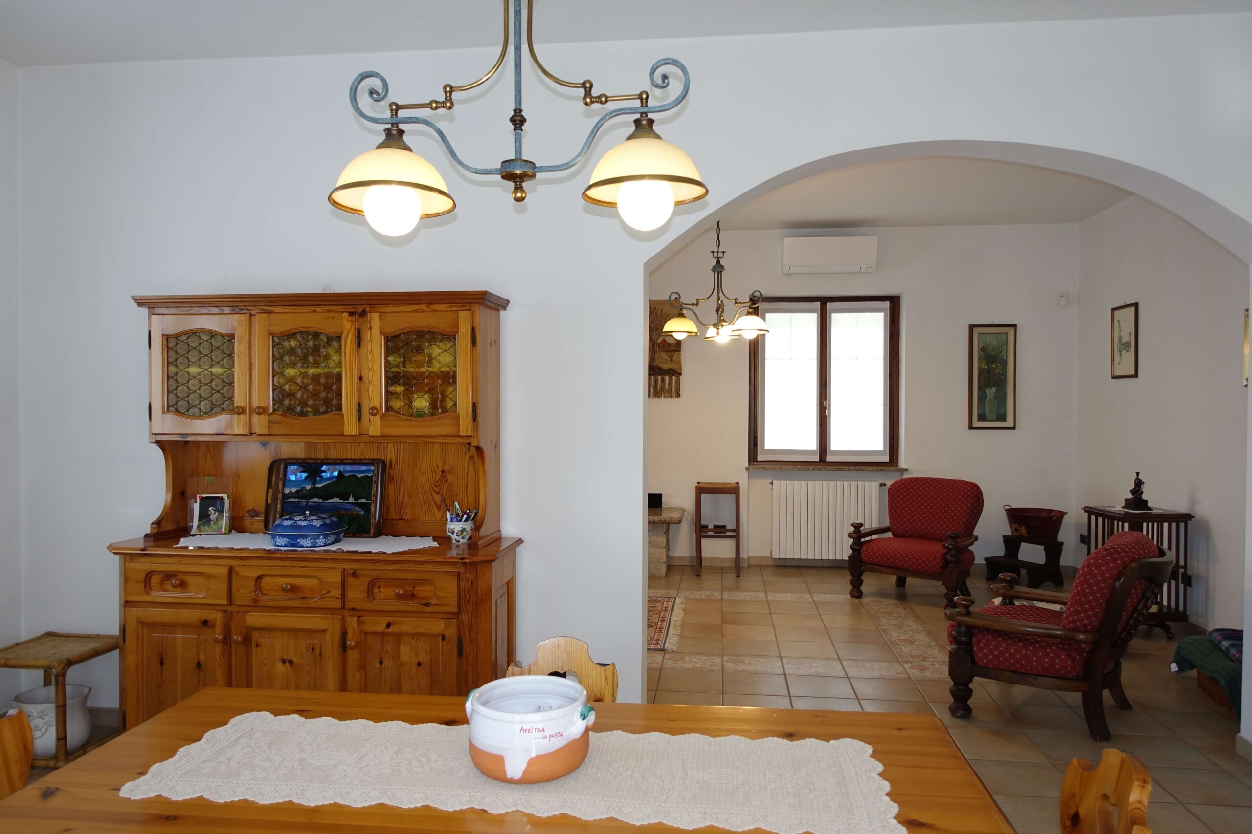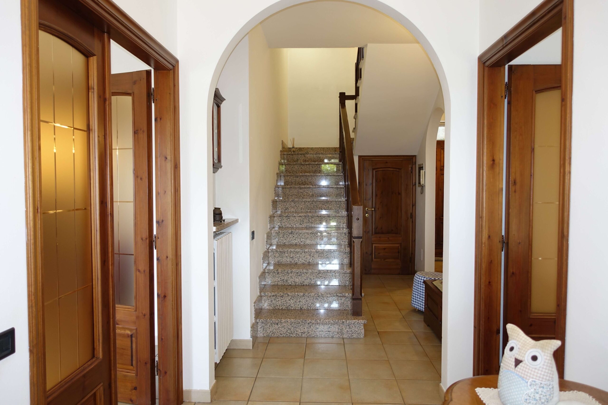 Living Spaces: On the ground floor, the kitchen and living room, featuring a cosy wood-burning fireplace, are spacious and bright: both open onto the outdoor terrace, which is perfect for enjoying sunny days or dinners at sunset