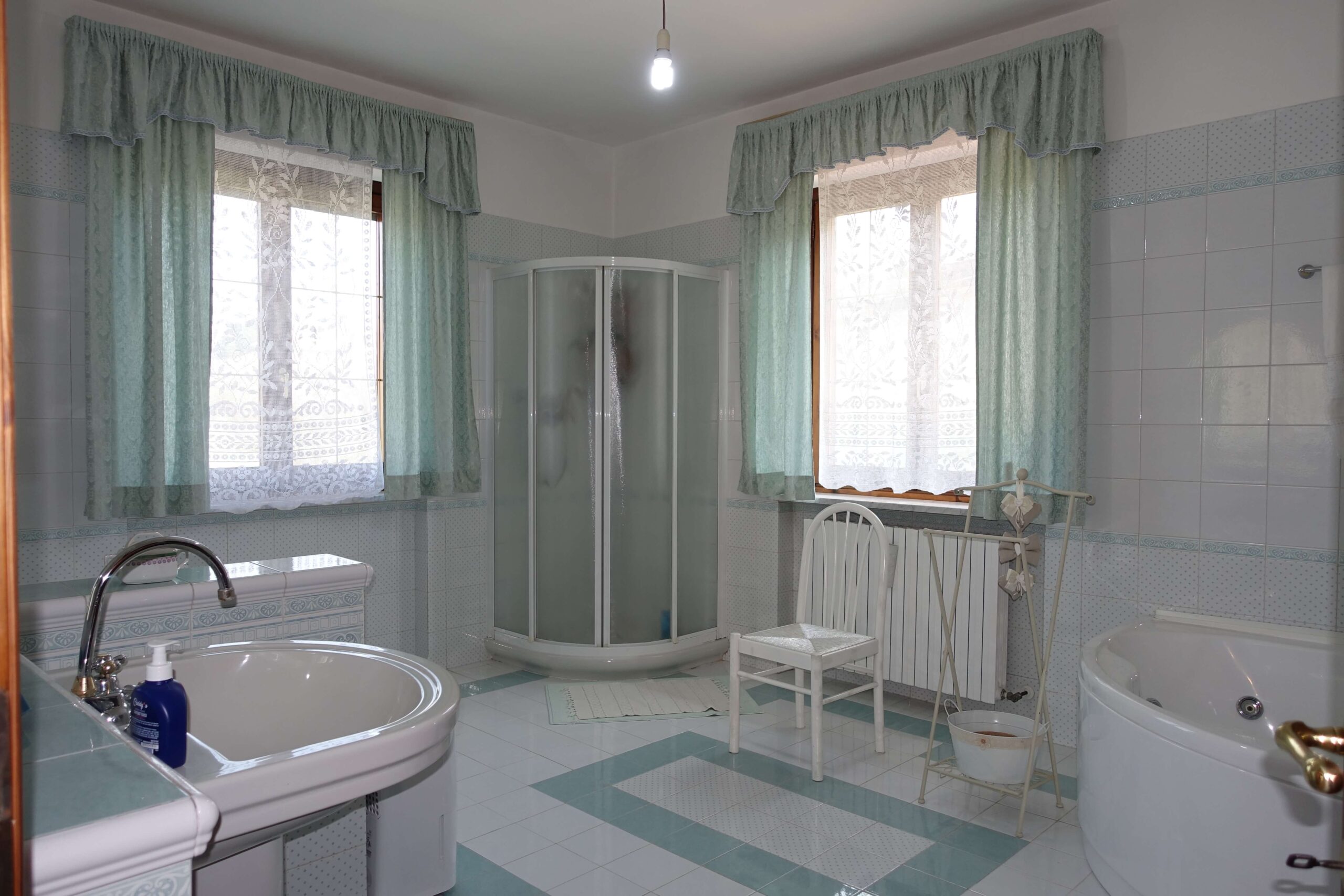 On the same floor teher is a beautiful sea-green bathroom!